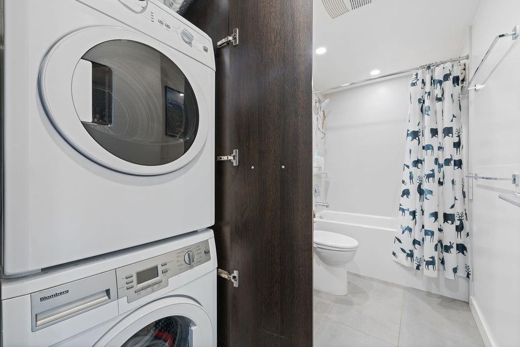 First time on the market, this SW corner 2-bed + den, 2-bath home at The Independent Offering floor-to-ceiling windows for a bright, open-concept layout with generous living, dining, and gourmet kitchen with double side by side fridges. The versatile den/flex room features sliding doors for added privacy, while the expansive 166 sq ft covered deck extends your living space year-round.Thoughtful touches include in-suite storage, 1 parking stall, and full air conditioning for year-round comfort. Situated in one of Mount Pleasant's most sought-after buildings, you're just steps from vibrant Main Street, transit, and the future Broadway & Main SkyTrain station. Amenities include a fitness room, garden, guest suite, bike storage, BBQ and dog wash areas, and a residents' lounge. Shows like new!