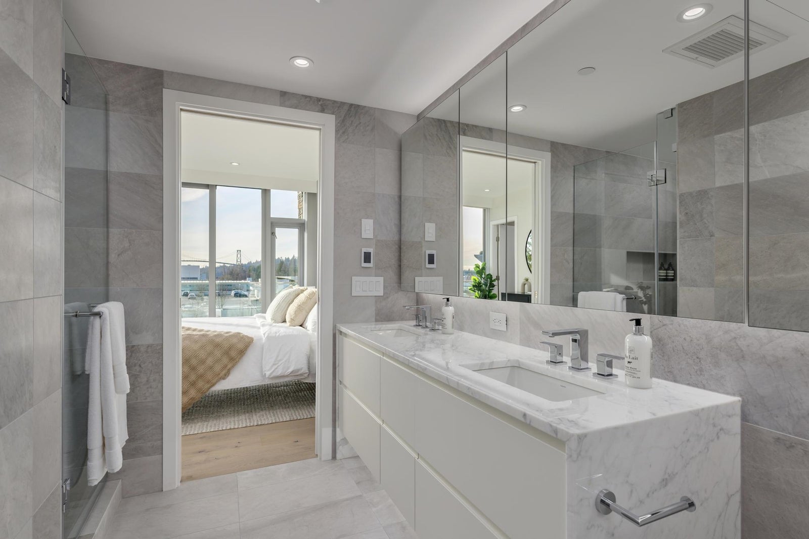 Introducing Evelyn Walk, the latest Townhouse Collection of luxurious West Vancouver living at Evelyn by Onni. Spacious, brand new 1855sqft three bedroom, three bathroom townhouses with gated entries and a huge front patio. We only have two townhouses left. The homes are 3 levels of living, including a private garage. With a bright, open floorplan, these designer homes are elegantly appointed with the finest finishes. The primary bedroom is spacious, with a great walk-in closet and luxurious ensuite. Additional features include automated lighting & blinds, built-in speakers, full-size washer & dryer, home automation ready, and more! Perfectly located, steps to Park Royal, Ambleside, just minutes to the seawall, restaurants, shops, and transport links! This is a must see!
