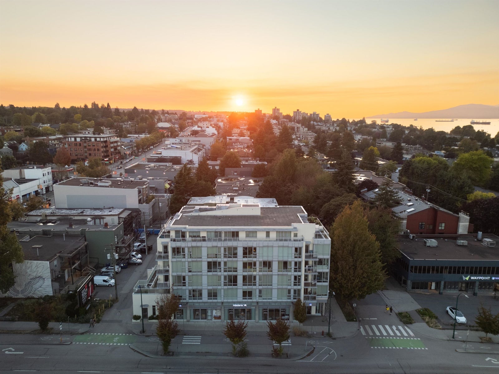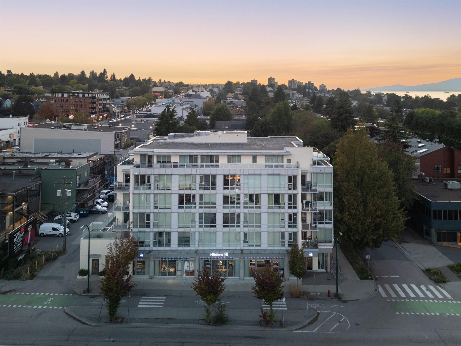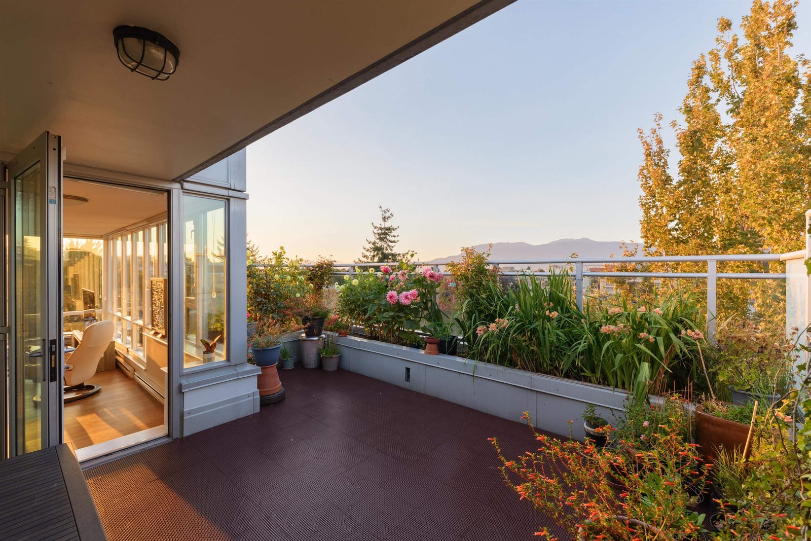 Experience unparalleled luxury with this signature Penthouse at KORE. This tranquil residence is a rare opportunity, perched atop the conveniences of Kits in the coveted north of West 4th neighbourhood. Natural light floods the space; offering calm morning light and panoramic city, mountain, and unrivalled evening sunsets. Direct access to fine dining, shopping, theatre, and outdoor venues. Designed for privacy, the thoughtful layout includes separated bedrooms and a primary suite with patio access. Den can be used as a home office or extra storage. Features include: Engineered H/W floors, floor to ceiling windows, and a luxury kitchen with gas range and spacious quartz island. Features: Gym, Garden, common room, bike storage, close to transit, 2 SBS parking.