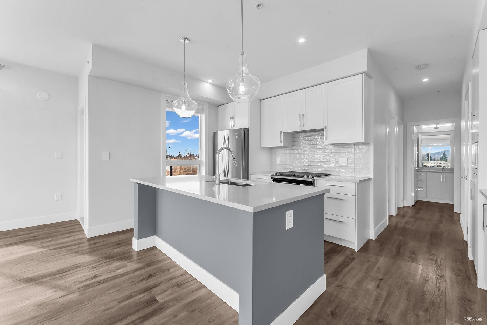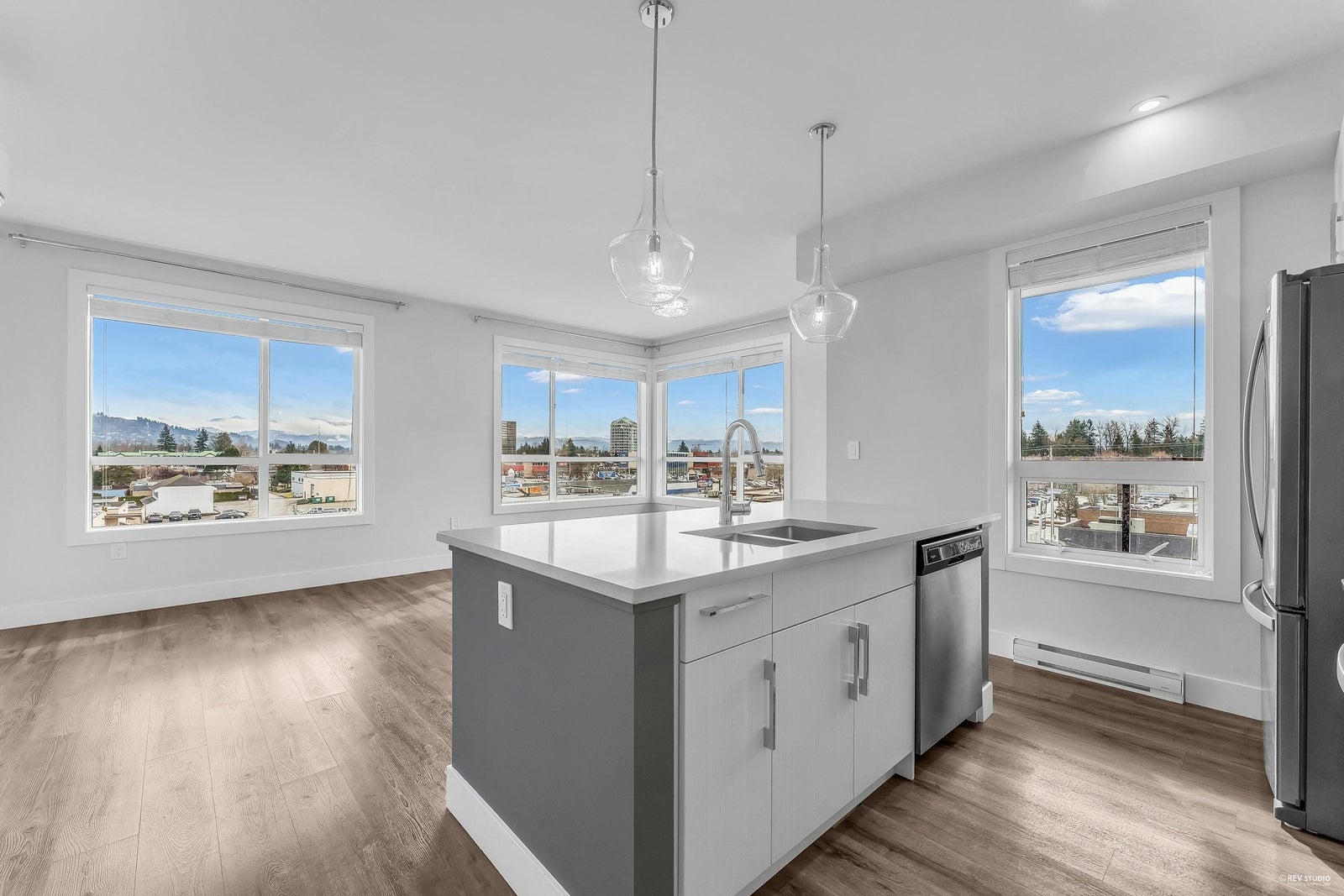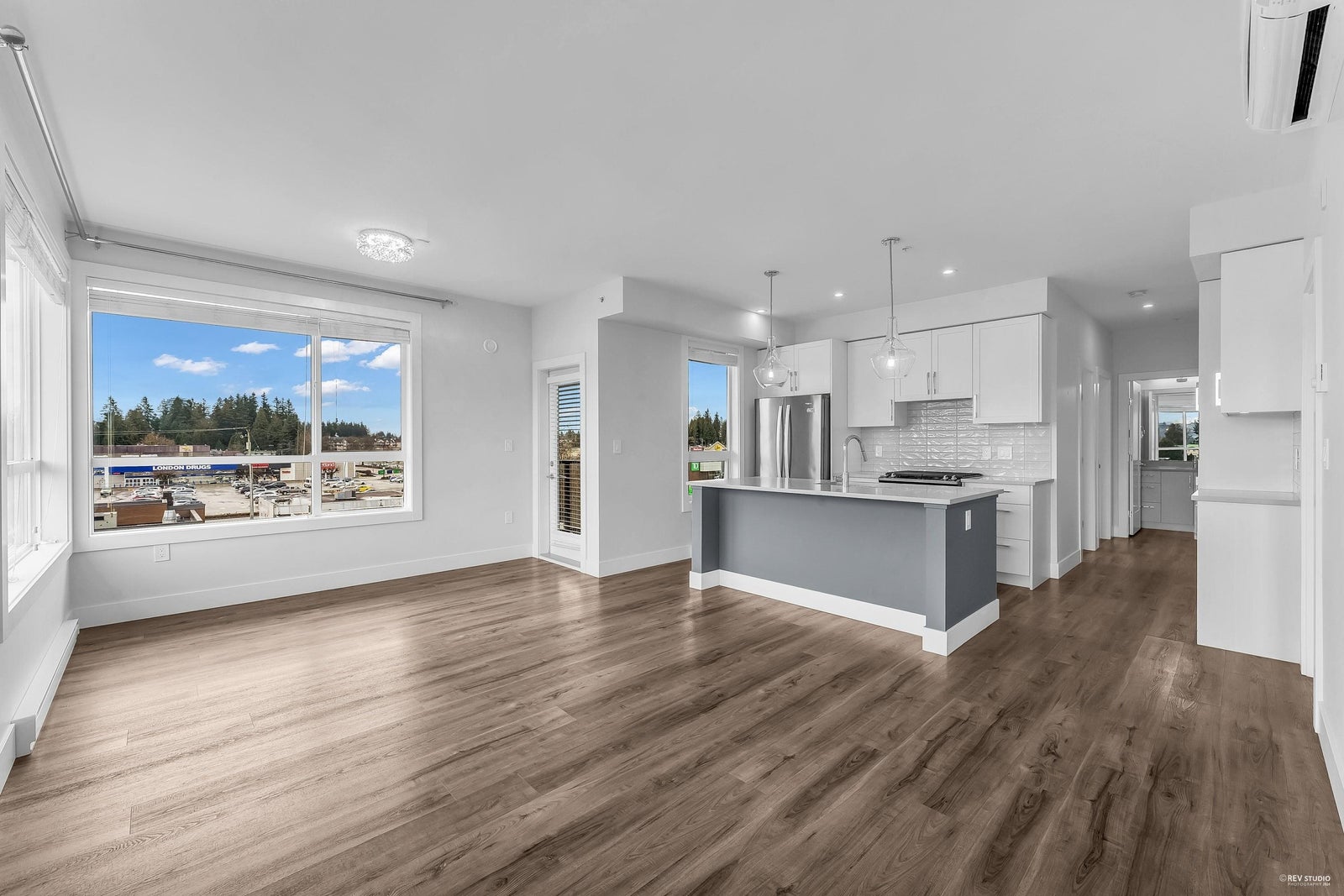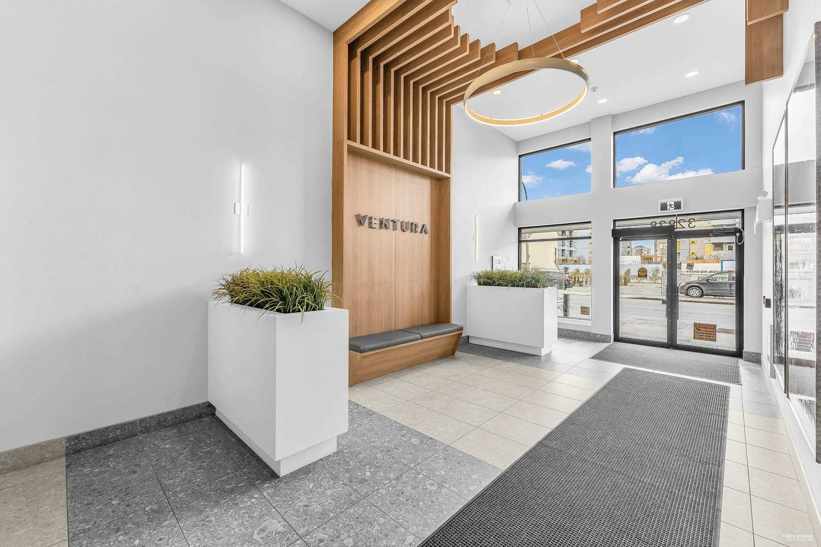 Rarely available – Spacious 2 Bedroom 2 Bathroom + large DEN that can be used as a third room. Corner unit offering one of the most desirable floor plans in the building. Bright, open concept, end unit, with tons of natural light & a large balcony. This home offers it all - spacious foyer, AIR CONDITIONING, 9’ ceilings, grand kitchen with huge island, plenty of cabinetry, pantry & gas cooking. Huge master bedroom with walk-in closet, Ensuite bathroom with double vanity sinks. Impeccably maintained home & strata. Developer upgrades: vinyl flooring throughout the entire unit, washer/dryer, built-in A/C, Quartz countertops throughout. Amenities: Fitness Studio, Bike room, dog washing station, party room w/ full kitchen, garden & covered gathering area with a BBQ & fire pit area + visitor parking. Incredible location in the heart of Central Abbotsford steps to malls, parks, shops, banks, schools, hospital & transit. 2 side-by-side large Parking Stalls, 1 large Storage Locker. OPEN HOUSE SAT MARCH 9th 1-4PM.