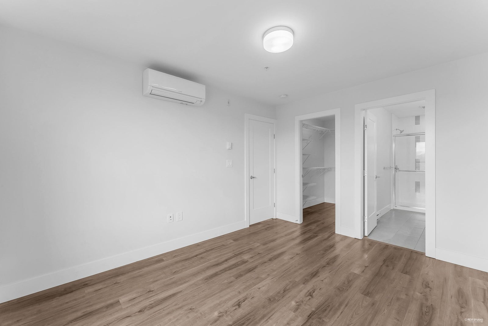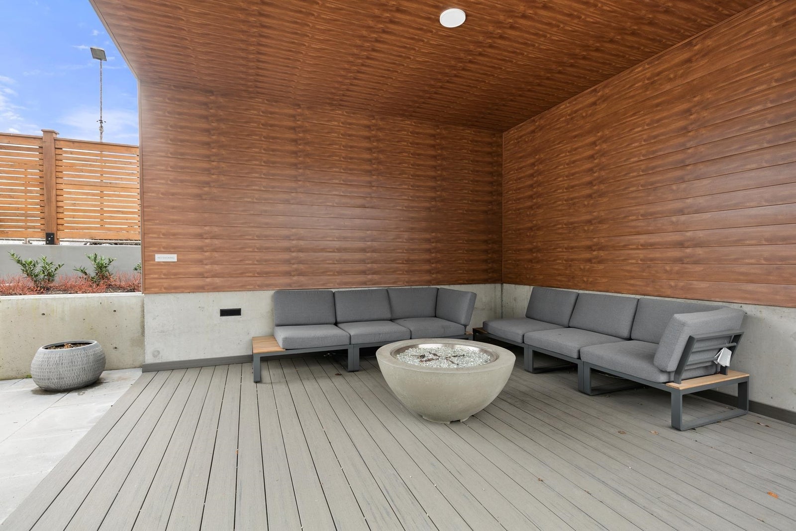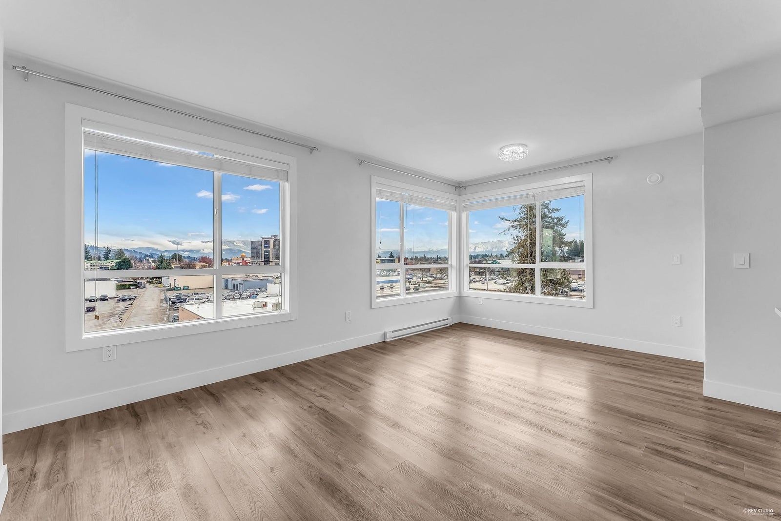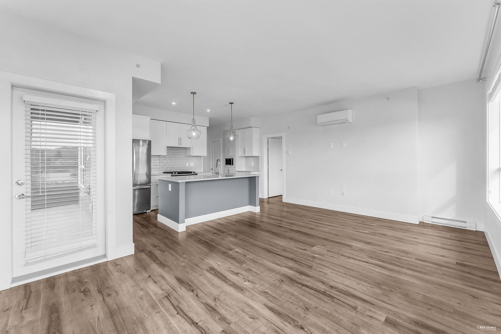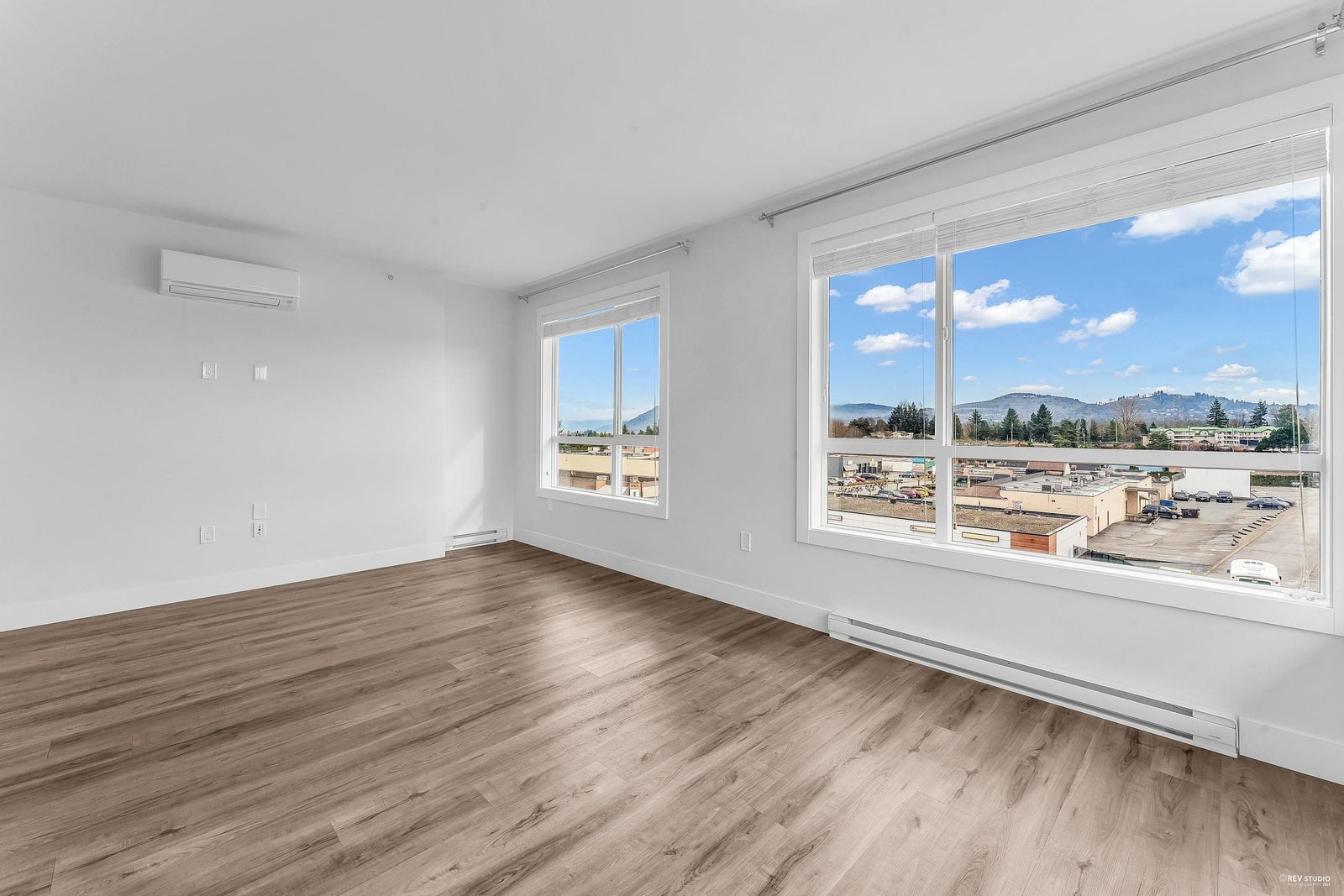Rarely available – Spacious 2 Bedroom 2 Bathroom + large DEN that can be used as a third room. Corner unit offering one of the most desirable floor plans in the building. Bright, open concept, end unit, with tons of natural light & a large balcony. This home offers it all - spacious foyer, AIR CONDITIONING, 9’ ceilings, grand kitchen with huge island, plenty of cabinetry, pantry & gas cooking. Huge master bedroom with walk-in closet, Ensuite bathroom with double vanity sinks. Impeccably maintained home & strata. Developer upgrades: vinyl flooring throughout the entire unit, washer/dryer, built-in A/C, Quartz countertops throughout. Amenities: Fitness Studio, Bike room, dog washing station, party room w/ full kitchen, garden & covered gathering area with a BBQ & fire pit area + visitor parking. Incredible location in the heart of Central Abbotsford steps to malls, parks, shops, banks, schools, hospital & transit. 2 side-by-side large Parking Stalls, 1 large Storage Locker. OPEN HOUSE SAT MARCH 9th 1-4PM.