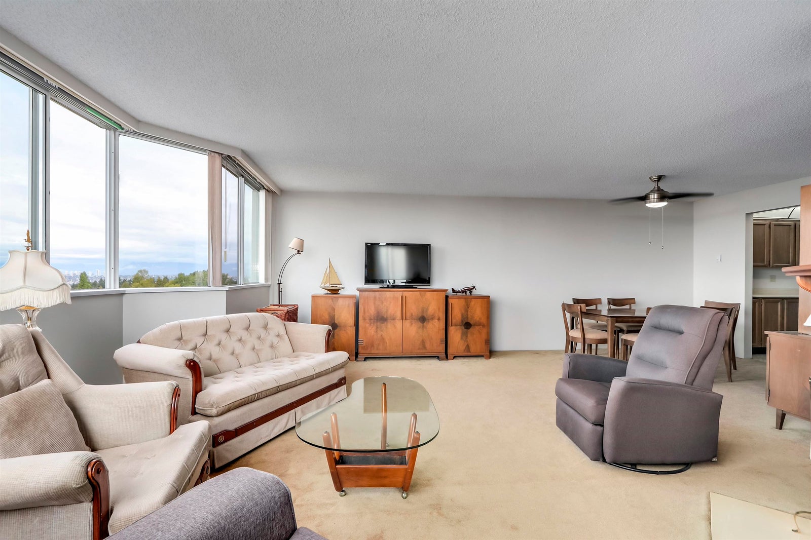Welcome to Kennedy Towers - Large 2 Bedroom & 2 Bathroom VIEW home with naturally BRIGHT, open, airy layout. Beautifully maintained with a spacious and functional floor plan. Plenty of windows throughout the space. Relish in your huge enclosed deck/solarium for added enjoyment all year round. 1 Parking stall + Storage locker. Amenities - bike room, recreation room, exercise room, workshop & rooftop deck with a pickleball court off the meeting room space that's wheelchair friendly. Gated complex with cameras for added security. Plenty of visitors parking for your guests + RV parking. Exceptionally well run complex with a healthy contingency. Schools, shops, playgrounds, parks, restaurants & all your needs just at your doorstep!