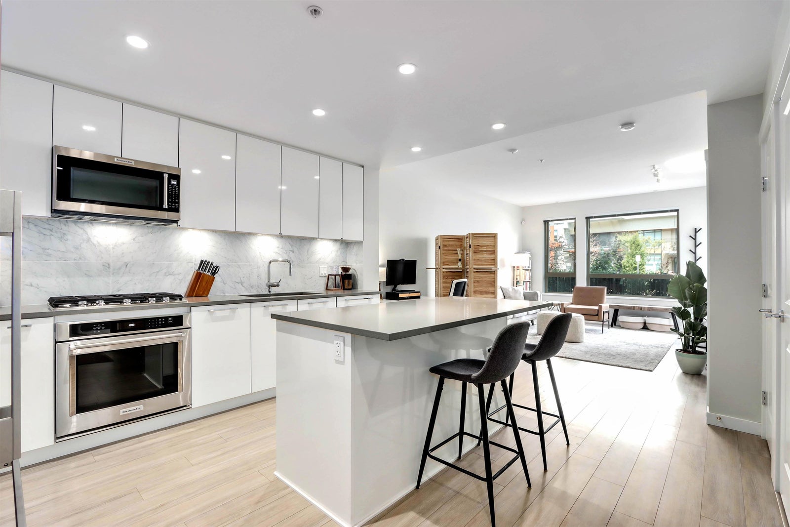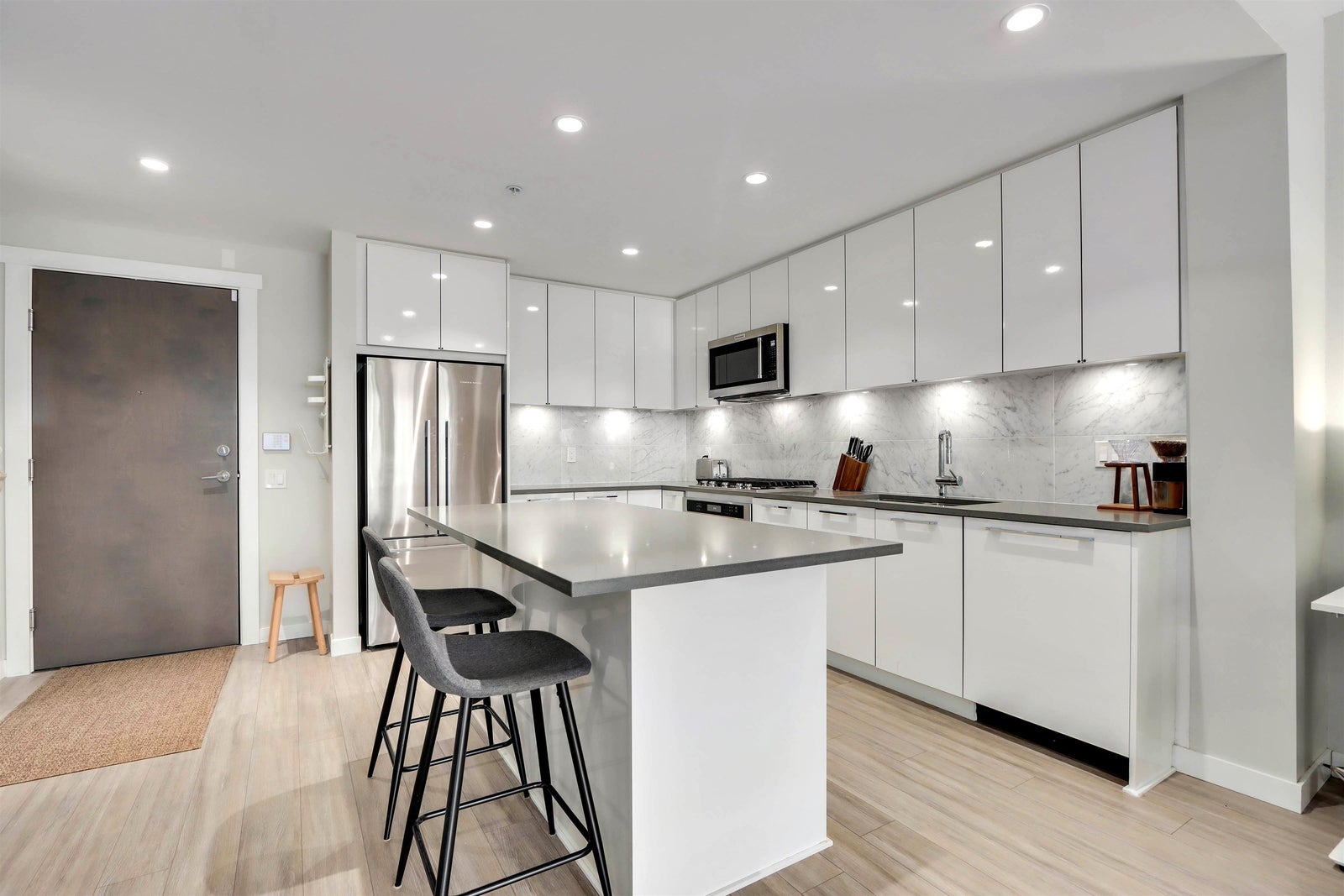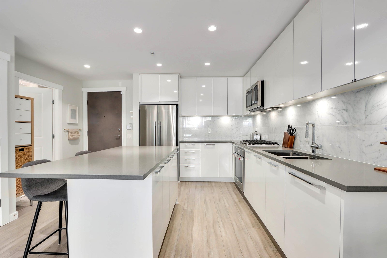Welcome to TALUSWOOD at the Timber Court by the reputable POLYGON. Beautifully maintained, well designed & very spacious one bedroom with a huge private patio. Enjoy a large kitchen space with plenty of cabinetry, gourmet gas cooking, quartz counters & high end s/s appliances, elegant marble backsplash, a huge kitchen island. Open concept living and dining area, in-floor radiant heat & near 9’ ceilings. Exceptionally maintained strata, under 5/10 warranty. Steps to Lynn Valley’s mall and shops, parks, schools, library, restaurants, and all of your recreational needs at your doorstep! Includes 1 PARKING + 1 spacious Storage LOCKER. Walking distance to trails, community centre, minutes to highway 1 with access to downtown.