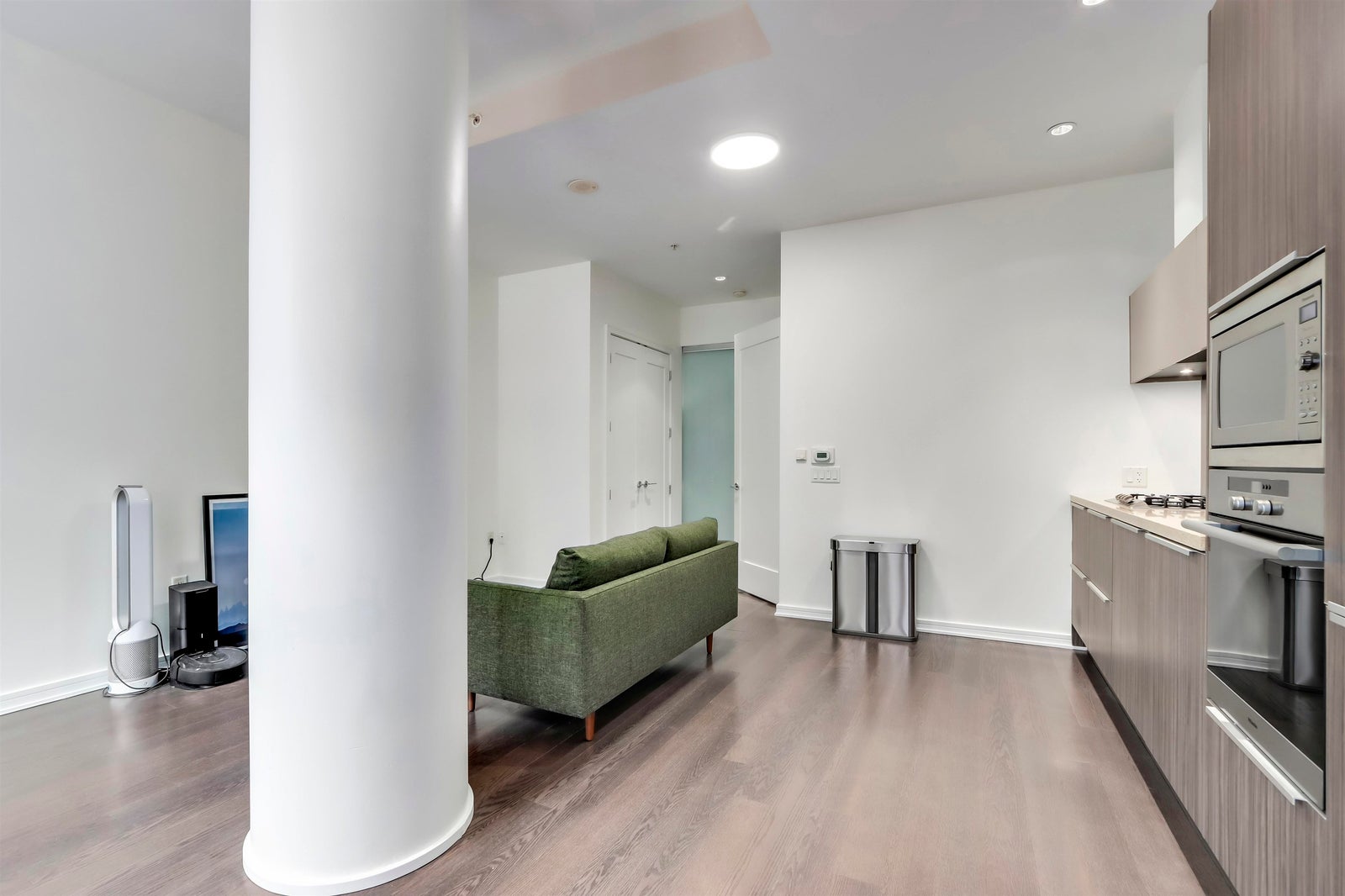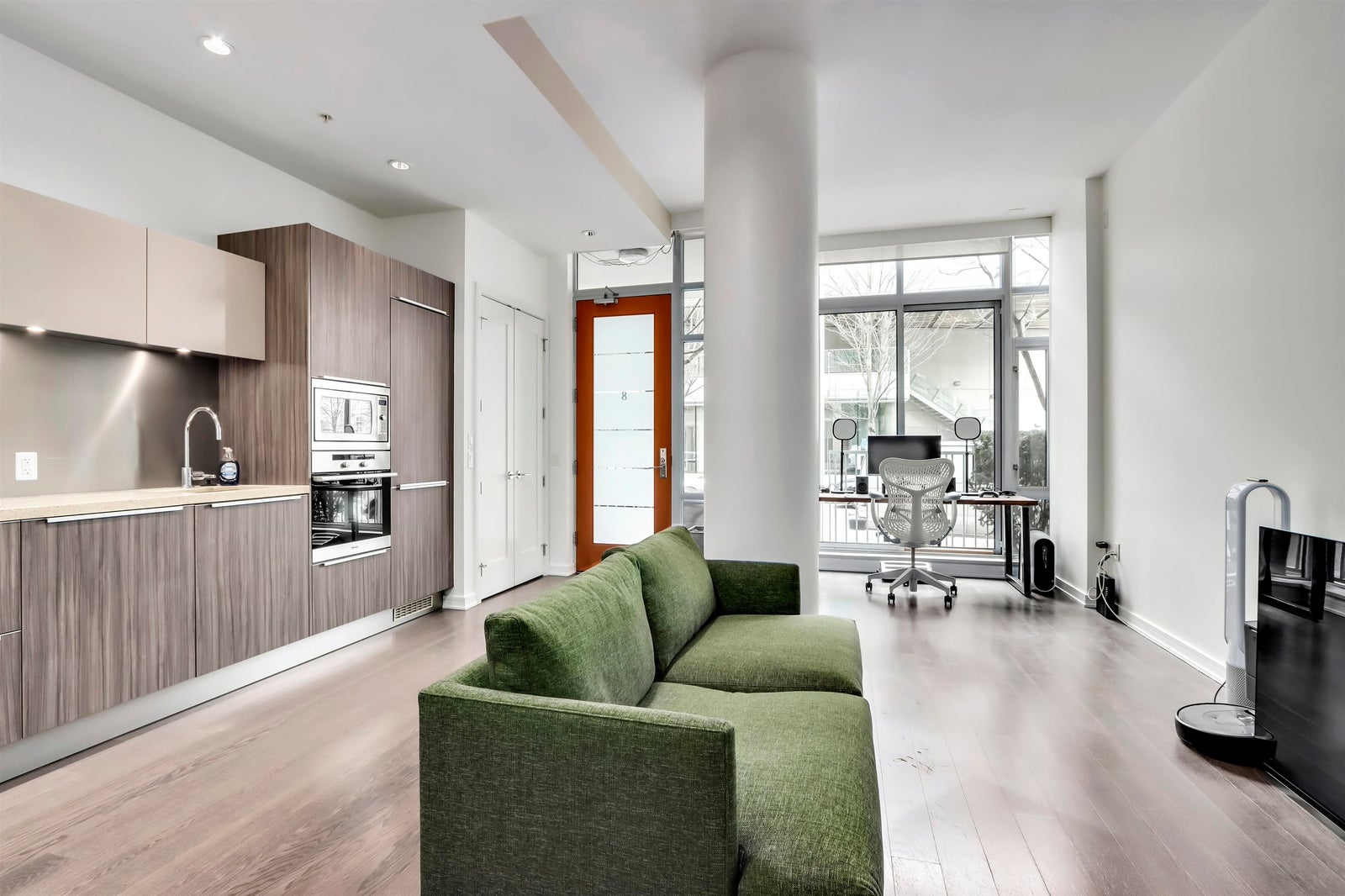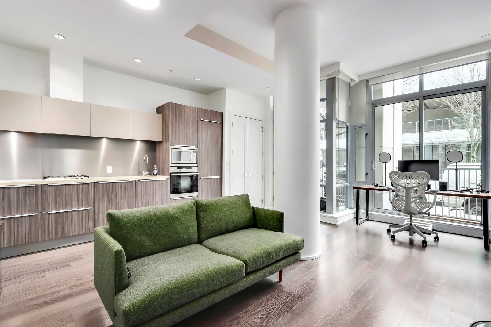 Welcome to Kayak at the Village! This beautiful 1 bedroom, 1 bathroom townhouse style unit is the epitome of modern living, offering a spacious and open layout. As you step inside, you'll be greeted by an abundance of natural light that floods the space, highlighting the high-quality finishes and attention to detail throughout. Featuring 10’ ceilings, s/s appliances, and sleek cabinetry. Located in one of the most desirable neighborhoods in Vancouver, you'll be steps away to all the best amenities the city has to offer. As a resident of this building, enjoy exclusive access to the Gold Medal Club. Don't miss out on this incredible opportunity!