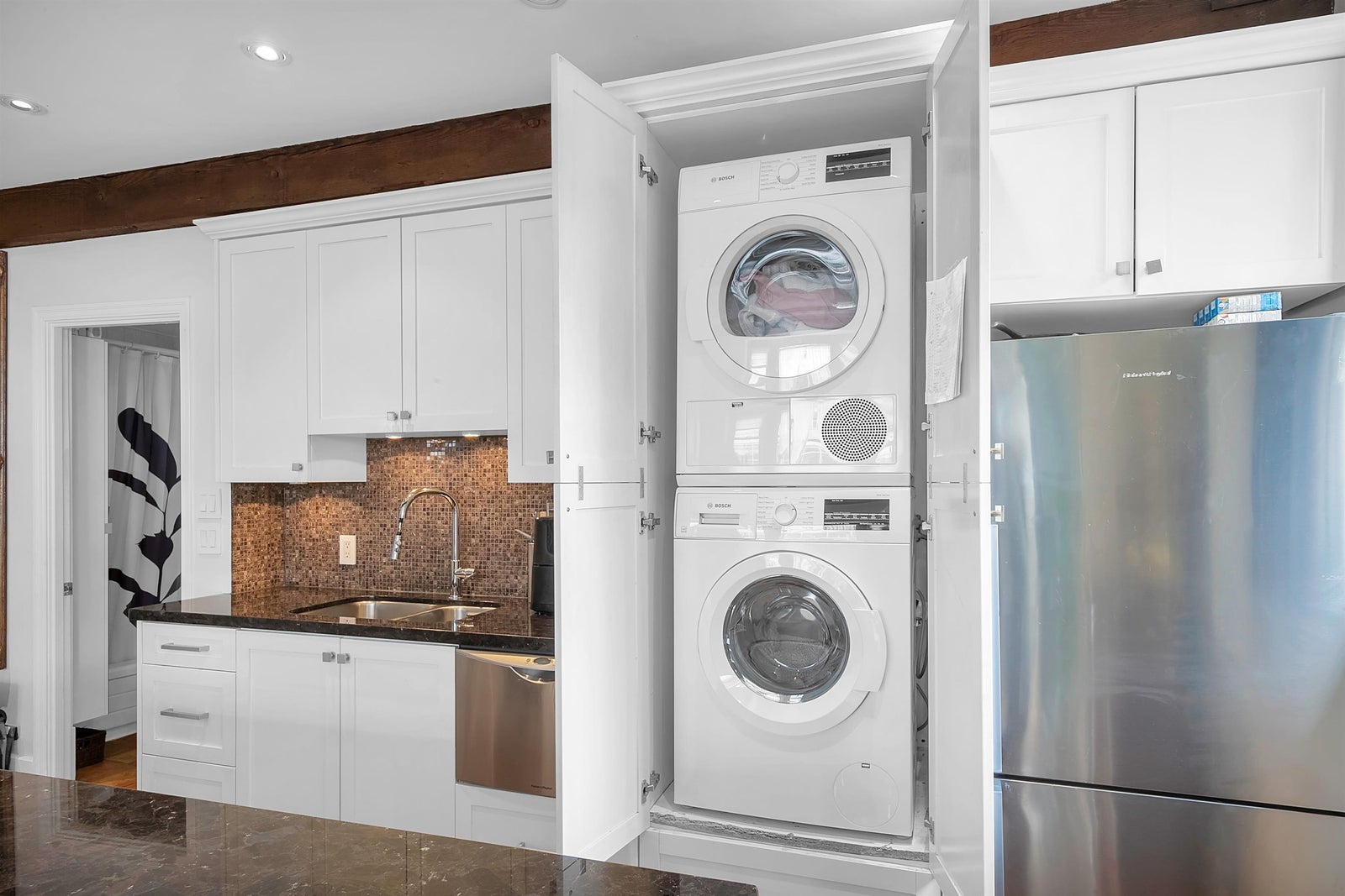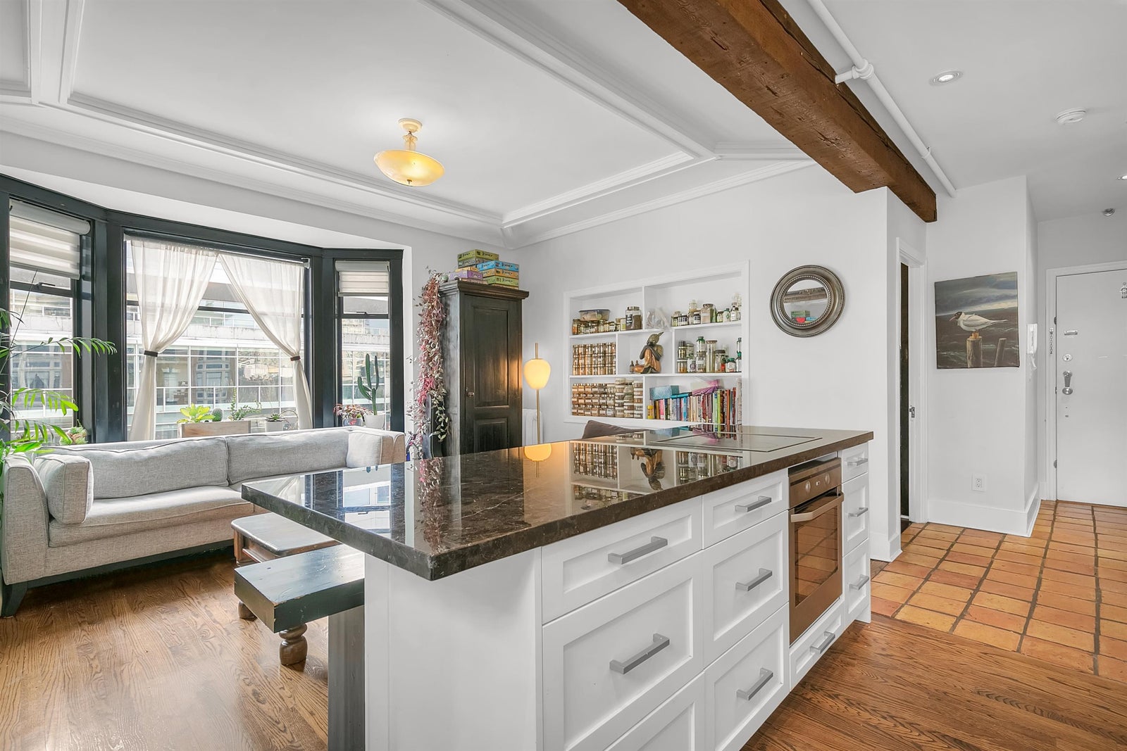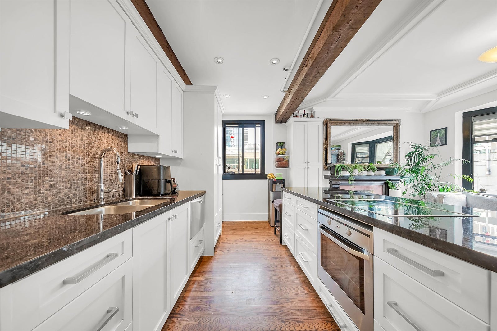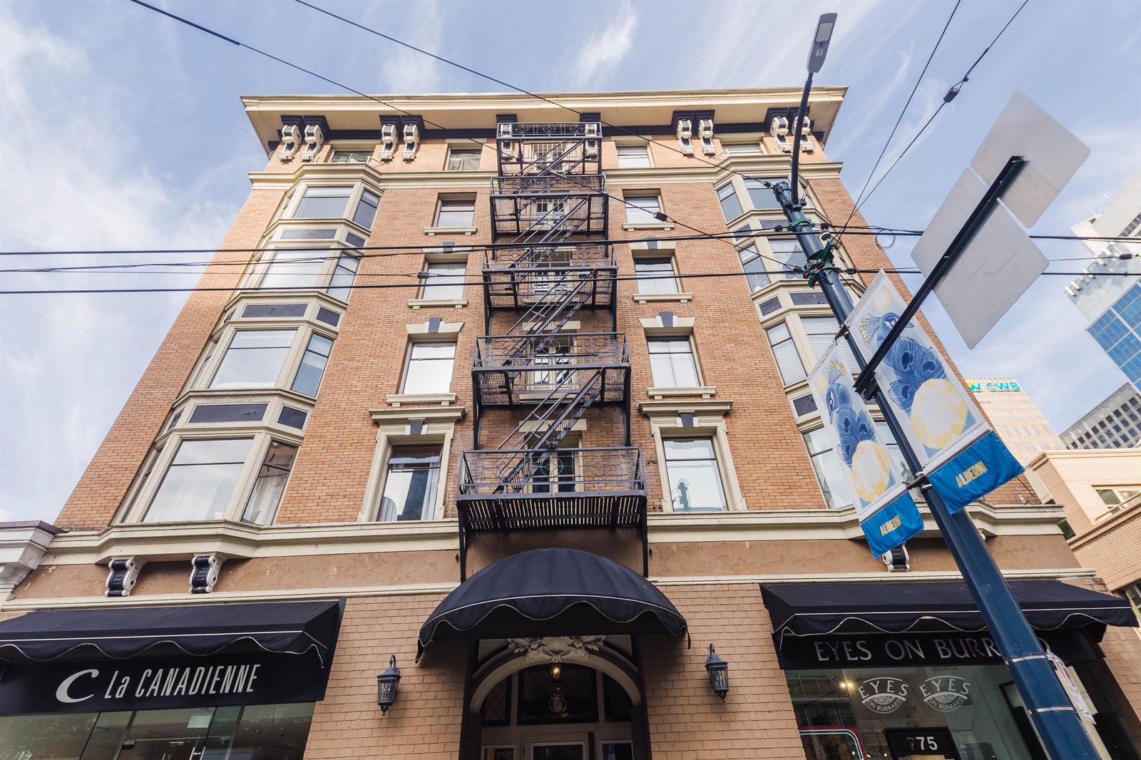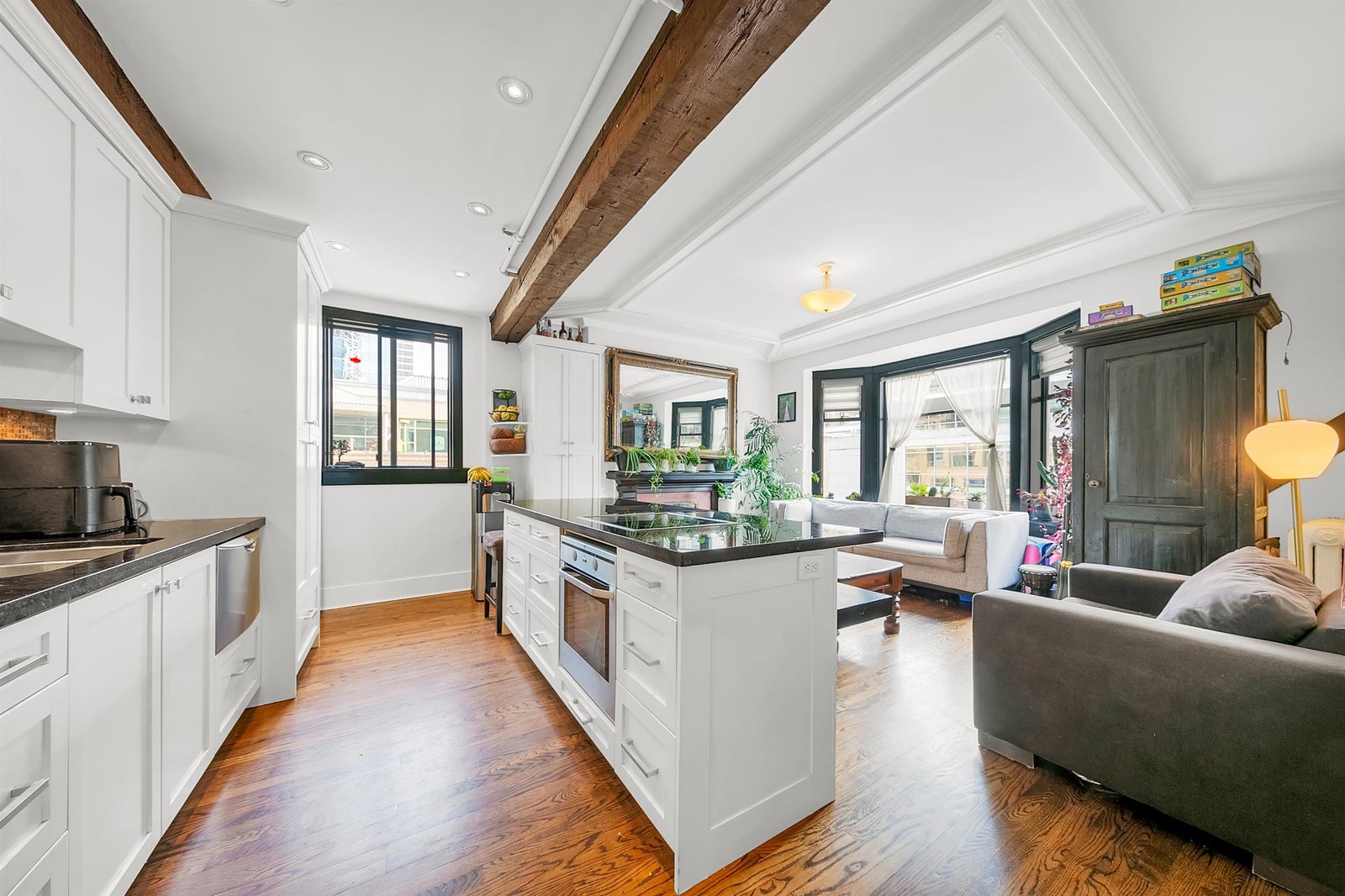 You'll fall in love with this gorgeous 1 bedroom in this stunning 1914 heritage building in the heart of Vancouver. Enjoy a large, bright and open modern kitchen with exposed wood beams, stainless steel appliances, custom shaker cabinets, gorgeous Spanish tile, tons of storage, and a spacious island perfect for entertaining. This unit is perfectly situated to capture maximum sunlight from the living room which has beautiful oak hardwood flooring, fireplace with fir mantel, and large bay windows perfect for enjoying your morning coffee. You'll find lots of fine restaurants close by and the iconic Fairmont Vancouver just across the street and you're just a short walk to the seawall! Comes w/ 1 locker. Cats allowed. Parking available to rent offsite.