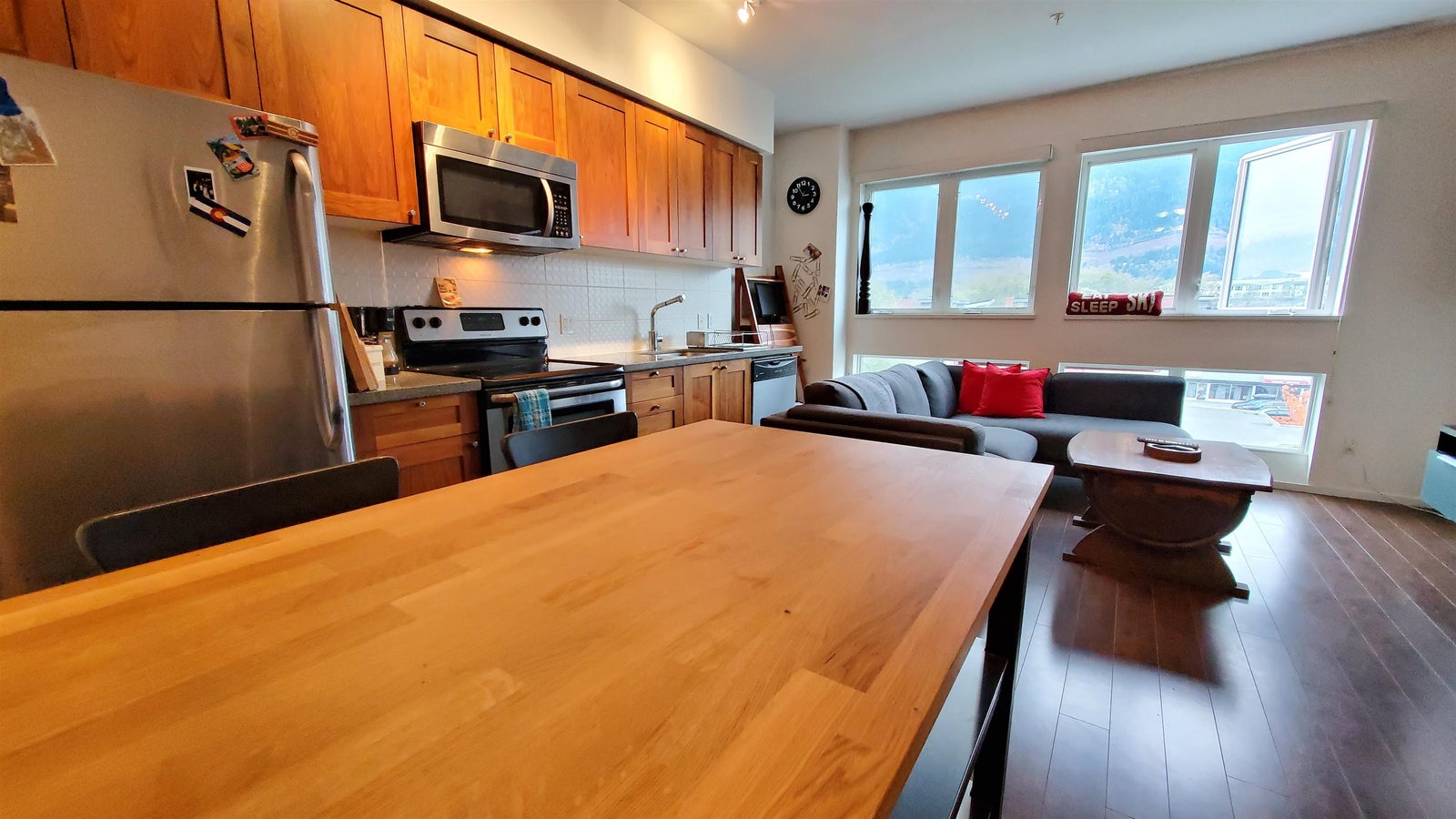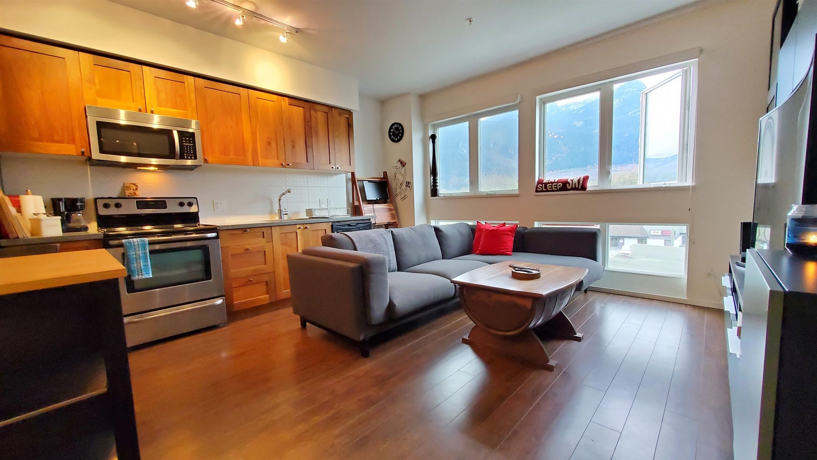 This could very well be the best unit in the Studio SQ complex. The views are unparalleled and the large rooftop deck is anyone's dream come true. The south facing outdoor space offers an unobstructed view of the Stawamus Chief, Marina, and Howe Sound. The home features high ceilings, southwest facing windows, in-suite laundry, semi ensuite bathroom, and unique storage space underneath the rooftop staircase. This 33 unit complex located in the heart of the Sea to Sky Corridor is a great opportunity for first time home buyers or an investment property. Just steps from the historic Howe Sound Brew Pub, local Farmers Market, and walking distance from all downtown amenities. This move-in ready home will be sure to give you the ultimate Squamish living experience!