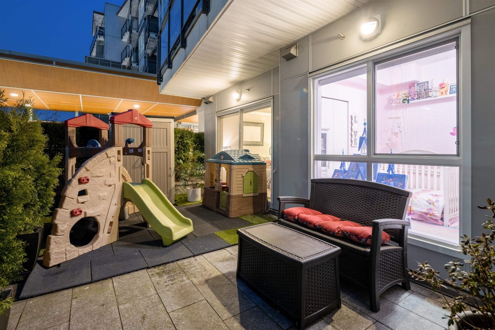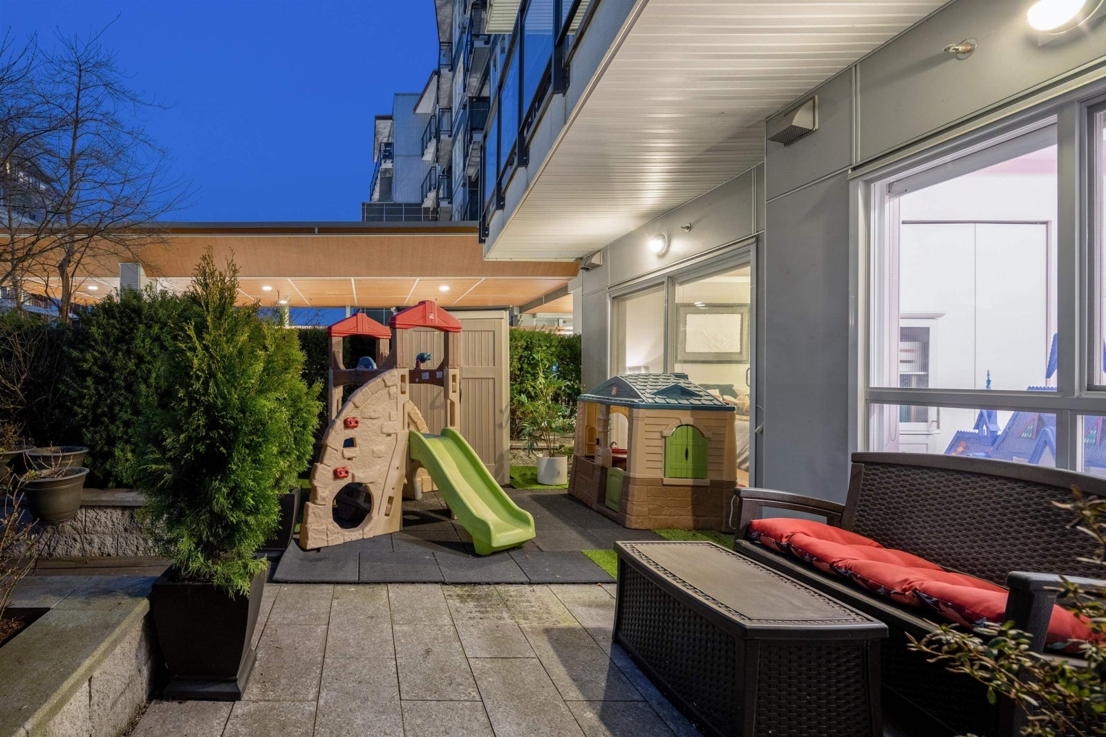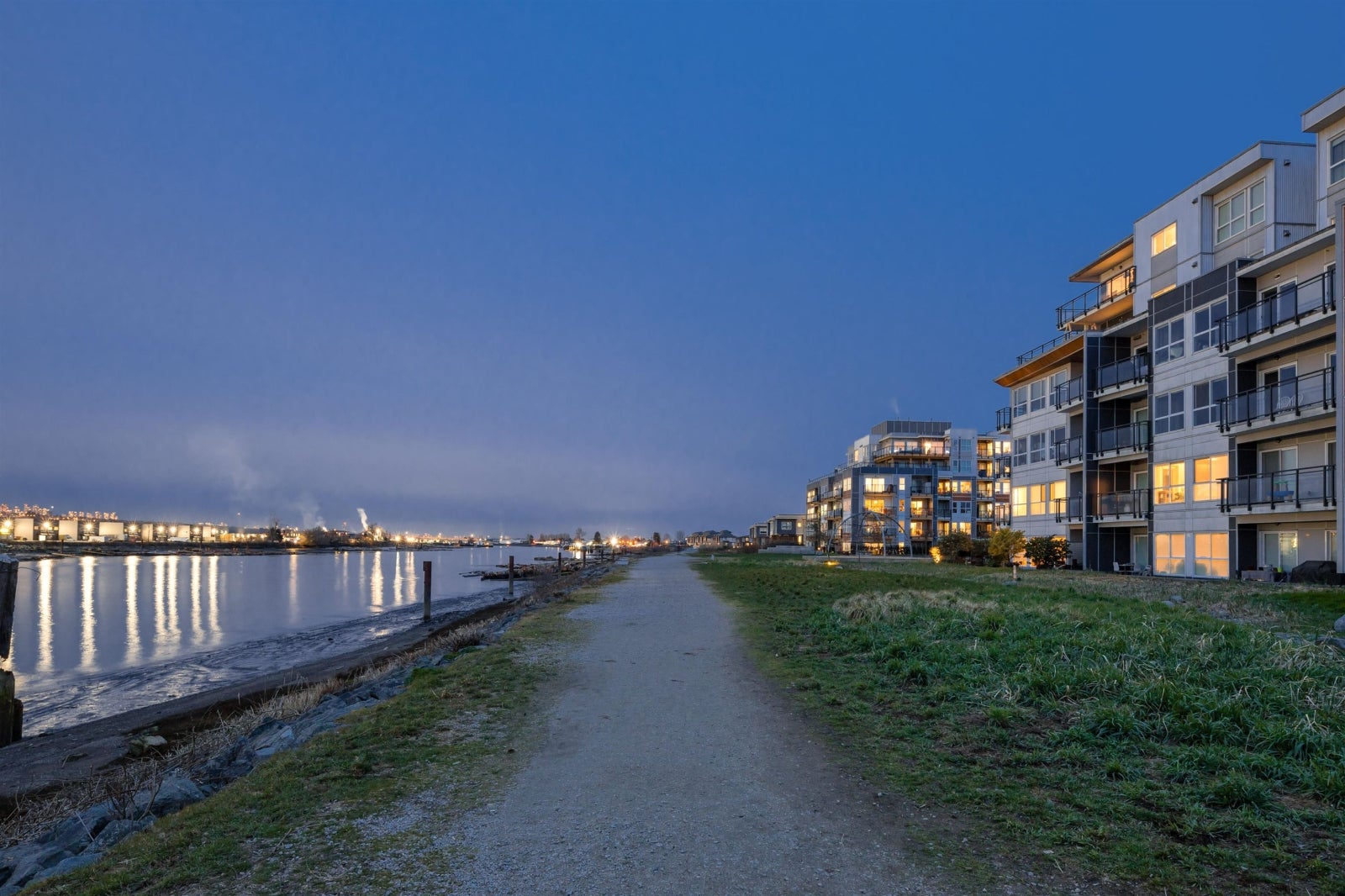 Welcome to Parc Riviera - A master-planned neighbourhood by Dava & Oris Developments - Richmond's premium Home Builders. This hidden gem in one of Richmond's most sought-after Riverfront Community. This two bedrooms & two bathrooms ground level, corner suite, is sure to impress you at the first appearance. Features include a spacious & efficient plan with generously sized living & dining area, & over-sized windows for plenty of natural lighting. Amazing front & side patios that total close to 600 SF plus your own exterior front door. Home features the latest technology with geothermal heating/cooling plus gas stove. First Class amenities include clubhouse, fitness centre, indoor pool, hot tub, & lounge. Ultra-convenience with easy access to River Rock Casino, Costco, Restaurants, & more.