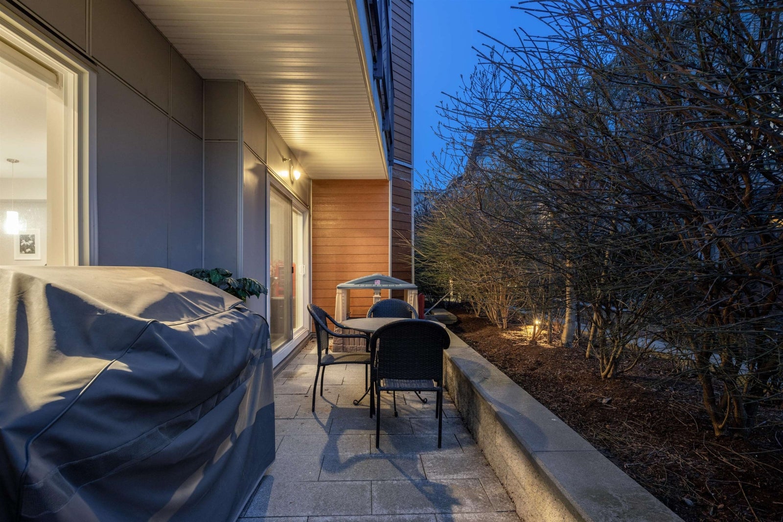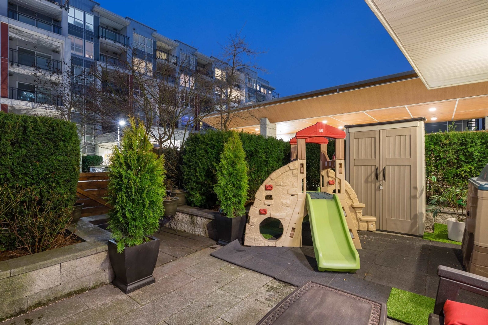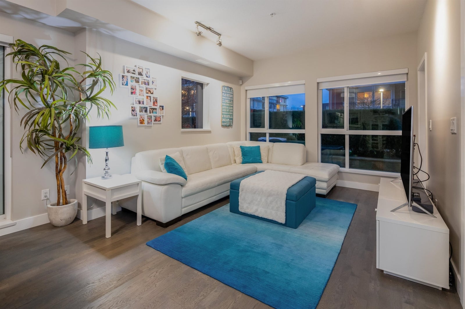 Welcome to Parc Riviera - A master-planned neighbourhood by Dava & Oris Developments - Richmond's premium Home Builders. This hidden gem in one of Richmond's most sought-after Riverfront Community. This two bedrooms & two bathrooms ground level, corner suite, is sure to impress you at the first appearance. Features include a spacious & efficient plan with generously sized living & dining area, & over-sized windows for plenty of natural lighting. Amazing front & side patios that total close to 600 SF plus your own exterior front door. Home features the latest technology with geothermal heating/cooling plus gas stove. First Class amenities include clubhouse, fitness centre, indoor pool, hot tub, & lounge. Ultra-convenience with easy access to River Rock Casino, Costco, Restaurants, & more.