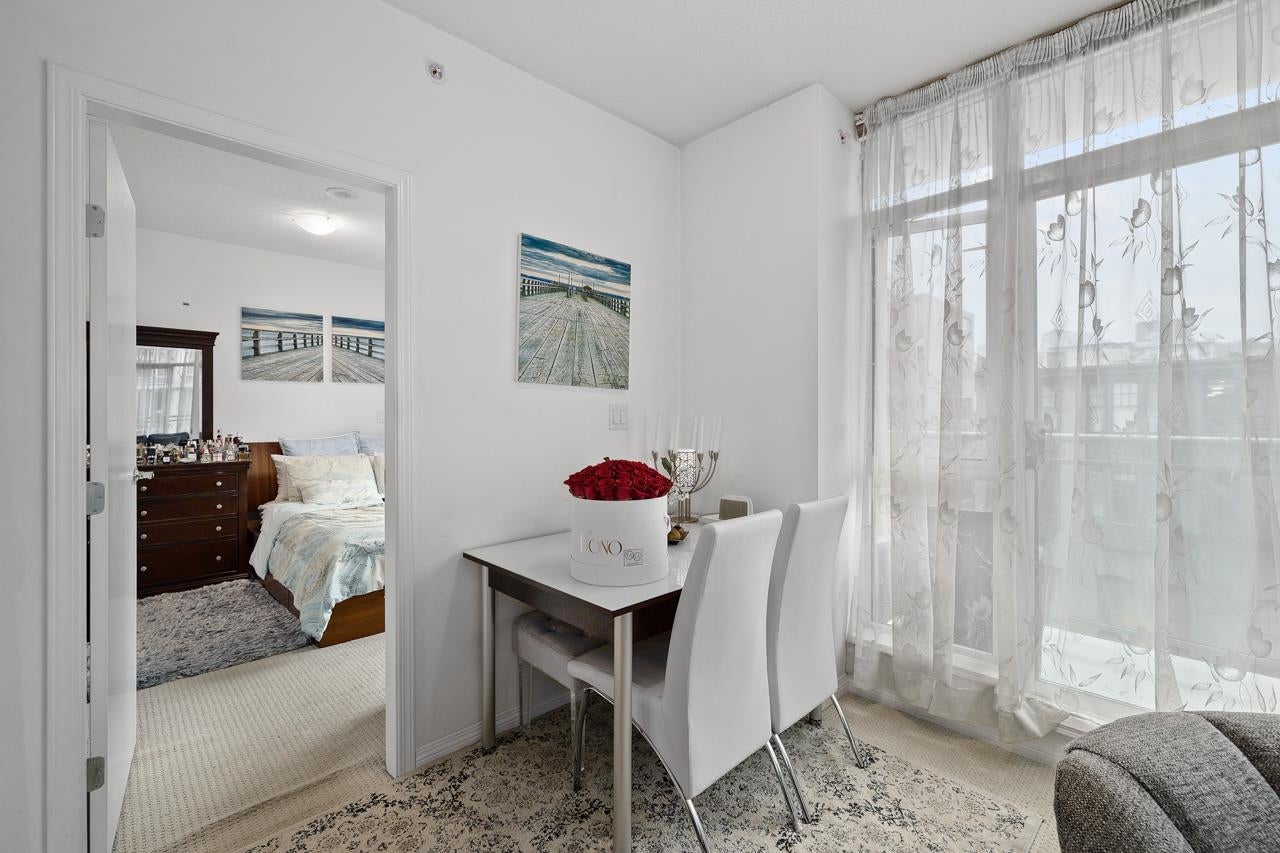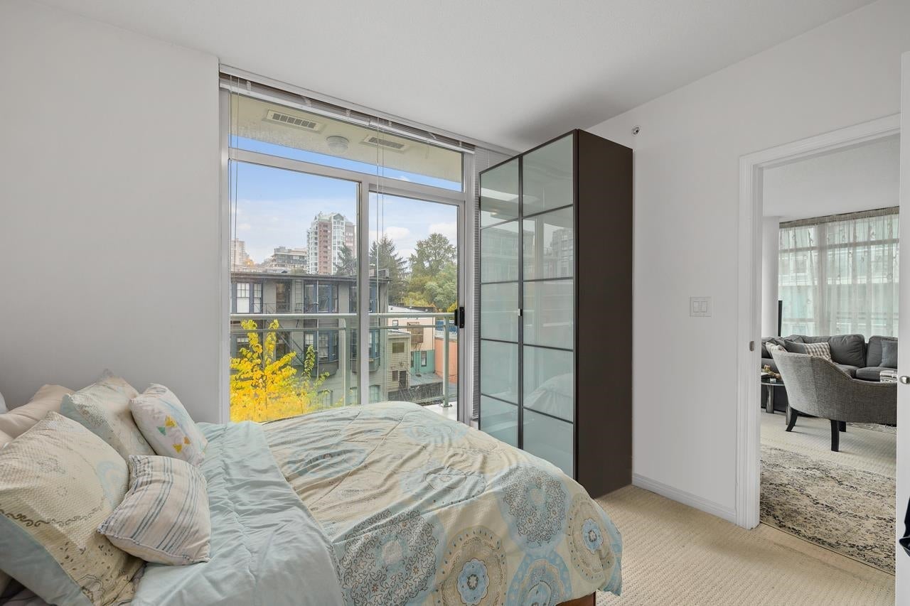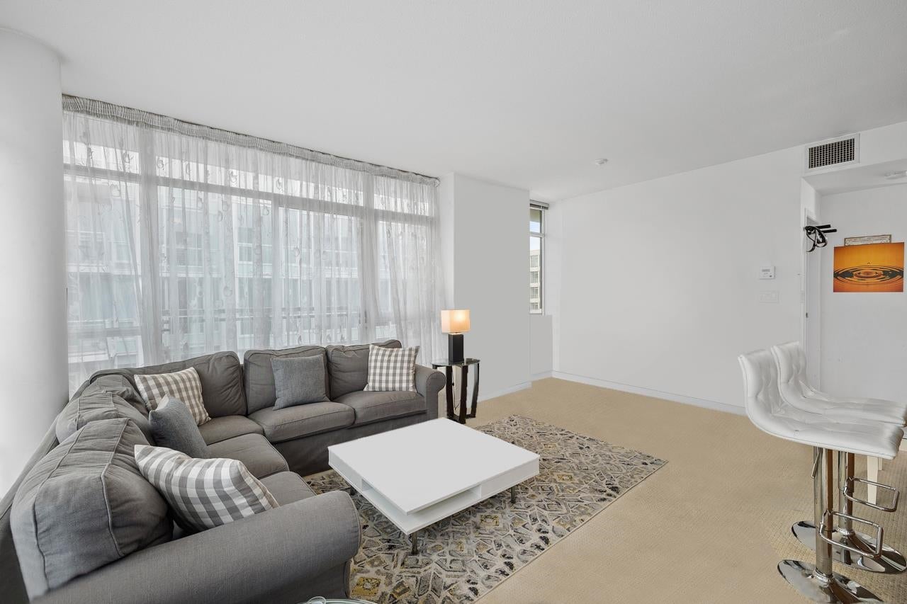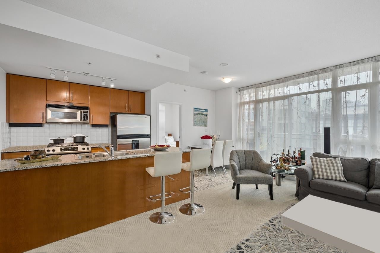 PENTHOUSE corner suite now available for the first time on the market! This 2 bed, 2 bath condo offers a wide corner floor plan w/ floor-to-ceiling windows with views of historic Lower Lonsdale buildings over a quiet tree-lined street. Enjoy separated bedrooms & large principle rooms. The open plan kitchen boasts an entertainer's island w/ granite counters, gas range & wood tone cabinetry. Lrg master suite w/ His & Her closets & 4 pc ensuite. Dual access to the spacious balcony from both the master bedroom & living space - in addition to a Juliet balcony for a beautiful cross breeze. AIR CONDITIONING, 1 parking & use of the pool/gym/amenities at the Pinnacle hotel for a sm. monthly fee. Pets & rentals allowed. Step to Seabus, Quay & Shipyards! Showing Thur 4:30-6pm, Sat 2:30-4pm or by apt.