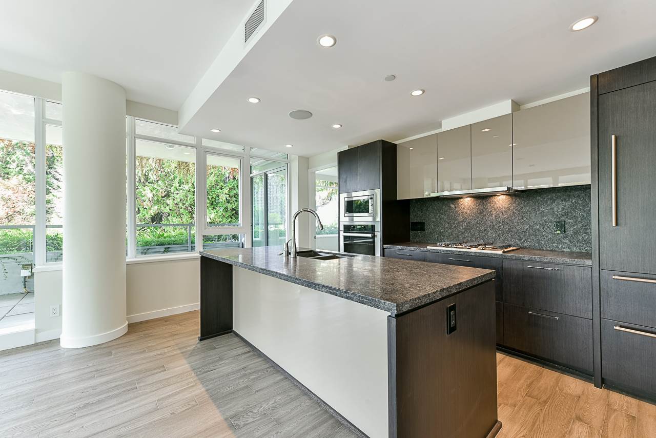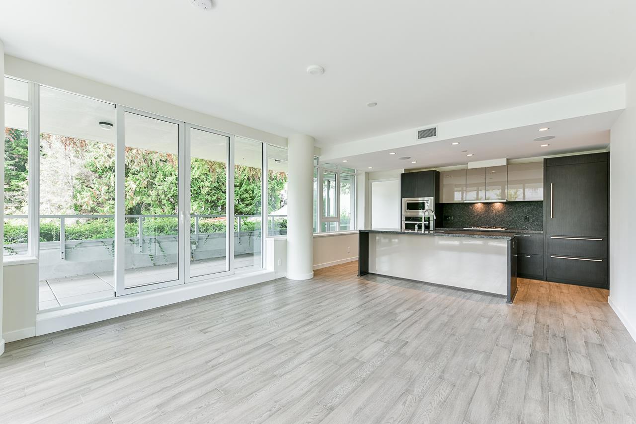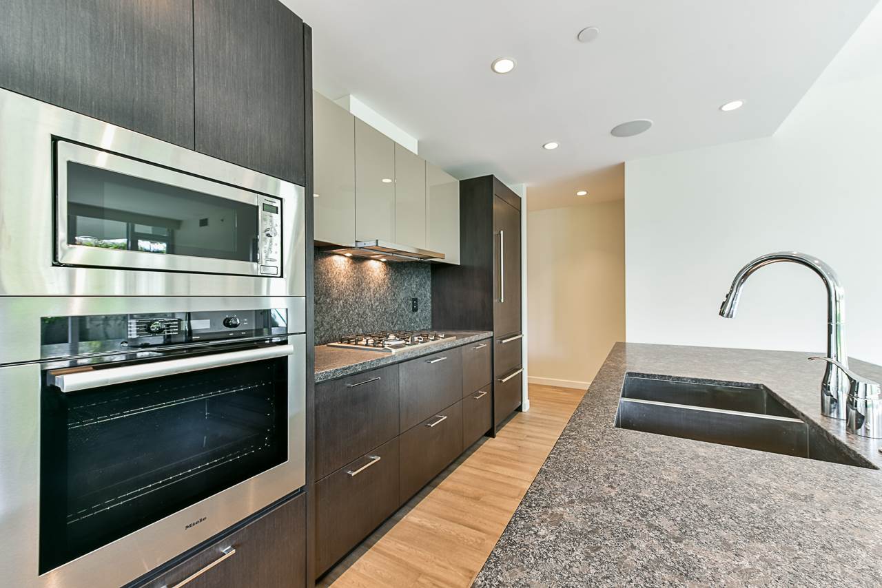 Welcome to the highly sought after Evelyn by Onni – brand new stunning residences in West Vancouver. Spacious SW Facing corner suite, 2 bedrooms, two bathrooms plus a large den which can be used as 3rd bedroom. The master suite has huge closets & a luxurious ensuite with marble countertops. Large wrap-around terrace, automated lighting & roller blinds built-in speakers, high-efficiency full-size washer/dryer, wide plank engineered oak hardwood flooring throughout. A gourmet kitchen with Sub-Zero & Miele appliances & composite stone countertops. Excellent location surrounded by lush greenery, steps to Park Royal Mall, Transit, Ambleside Beach, beautiful West Coast parks & trails. Just minutes to the seawall, restaurants, shops, grocery stores & more. Showings by Appointment Only.