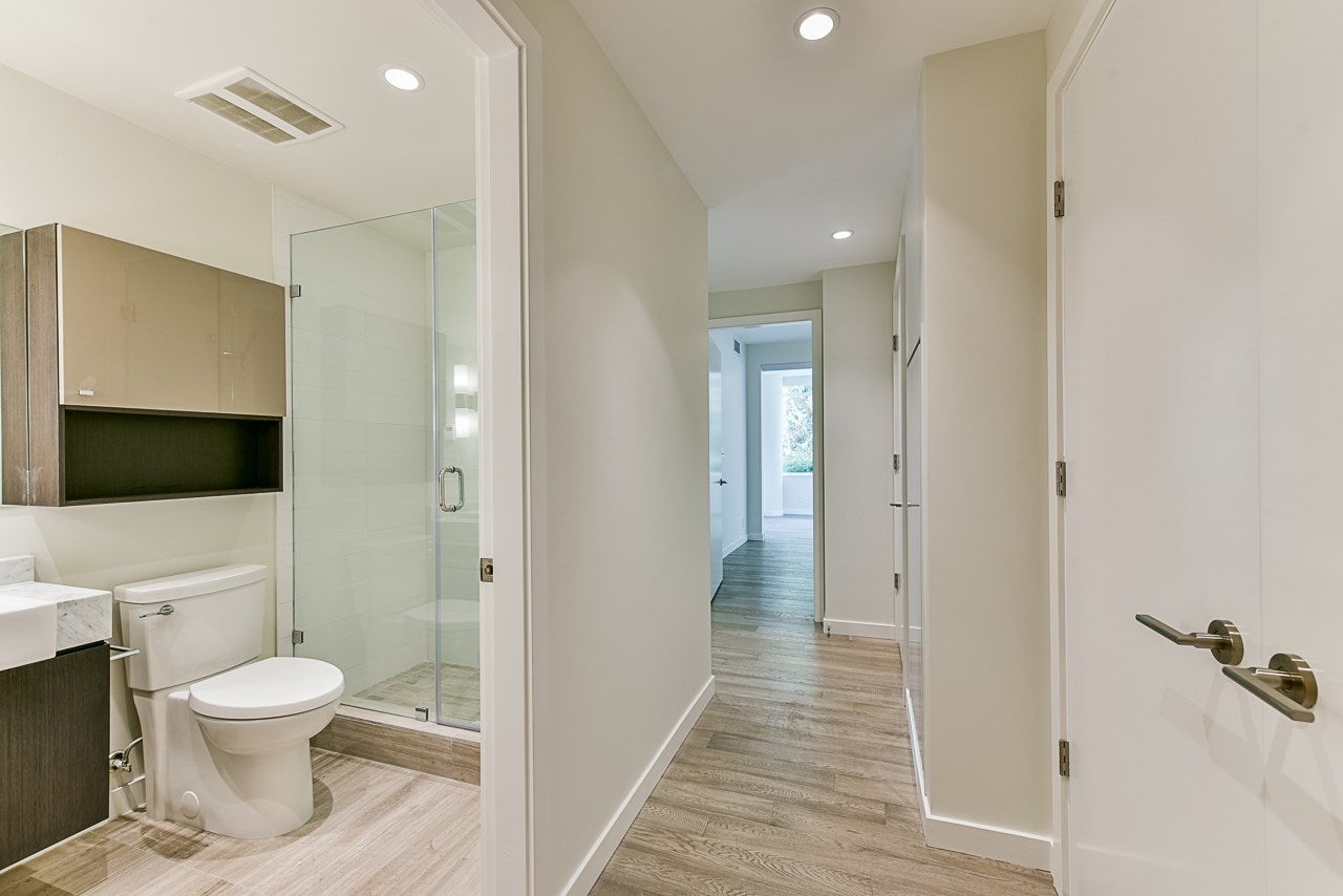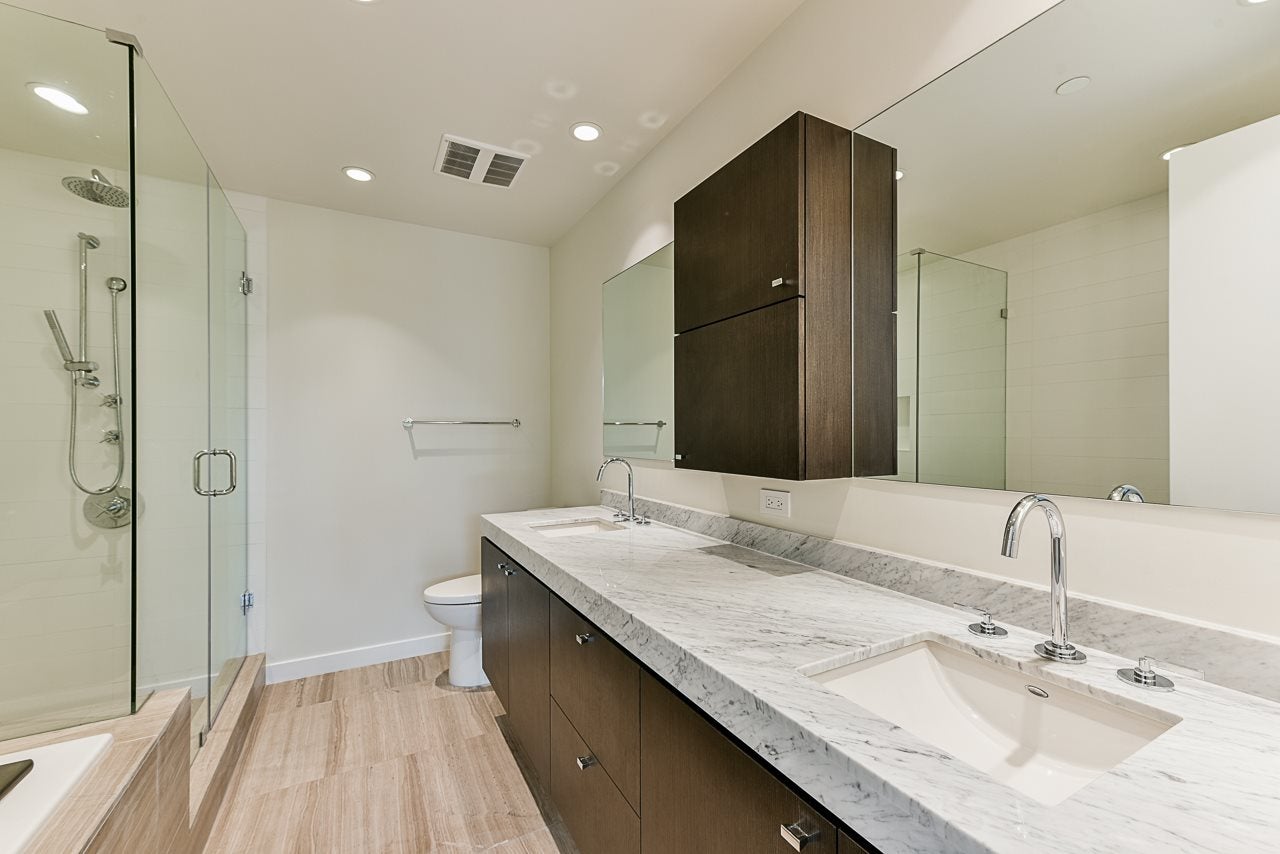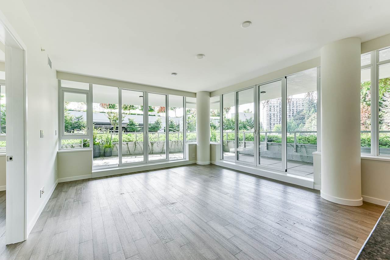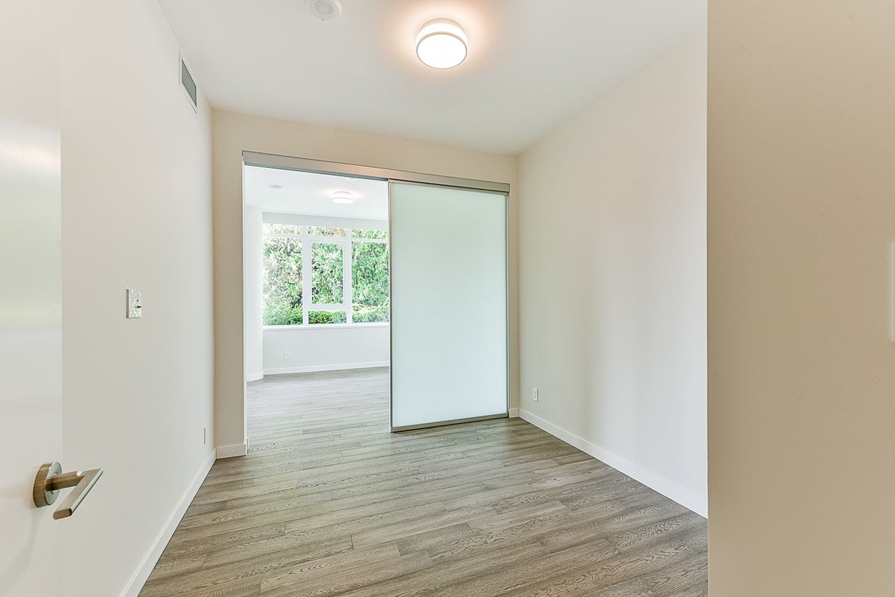 Welcome to the highly sought after Evelyn by Onni – brand new stunning residences in West Vancouver. Spacious SW Facing corner suite, 2 bedrooms, two bathrooms plus a large den which can be used as 3rd bedroom. The master suite has huge closets & a luxurious ensuite with marble countertops. Large wrap-around terrace, automated lighting & roller blinds built-in speakers, high-efficiency full-size washer/dryer, wide plank engineered oak hardwood flooring throughout. A gourmet kitchen with Sub-Zero & Miele appliances & composite stone countertops. Excellent location surrounded by lush greenery, steps to Park Royal Mall, Transit, Ambleside Beach, beautiful West Coast parks & trails. Just minutes to the seawall, restaurants, shops, grocery stores & more. Showings by Appointment Only.