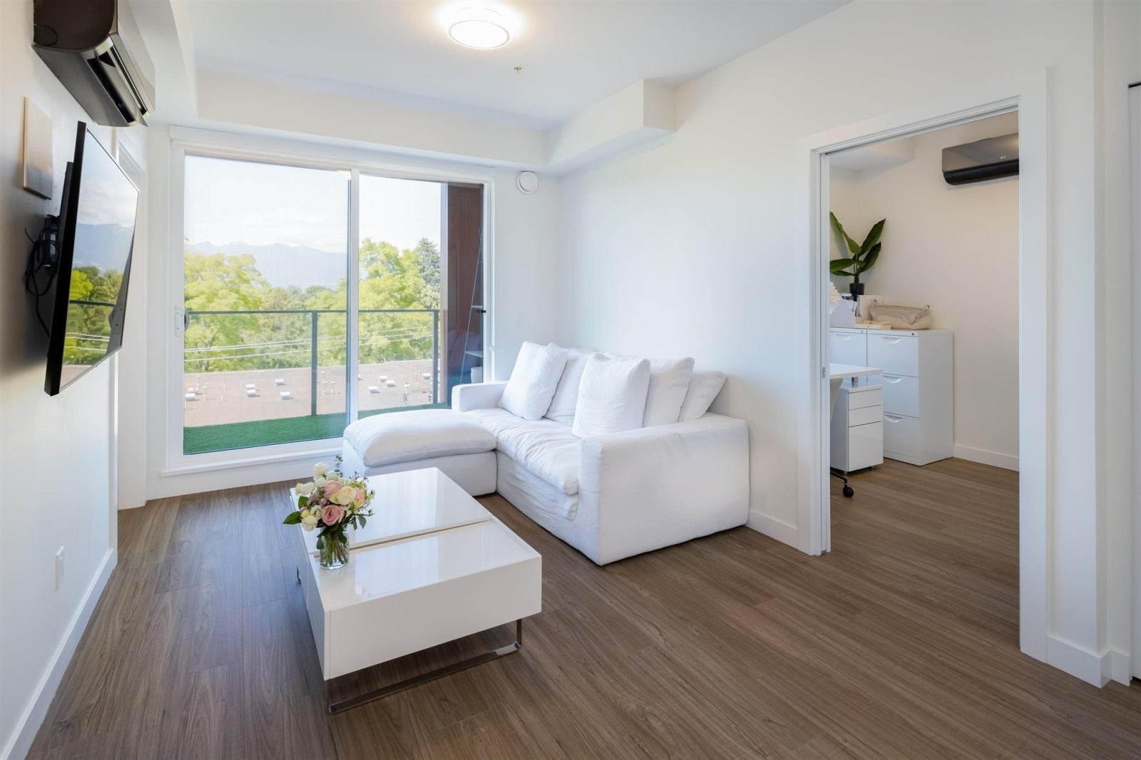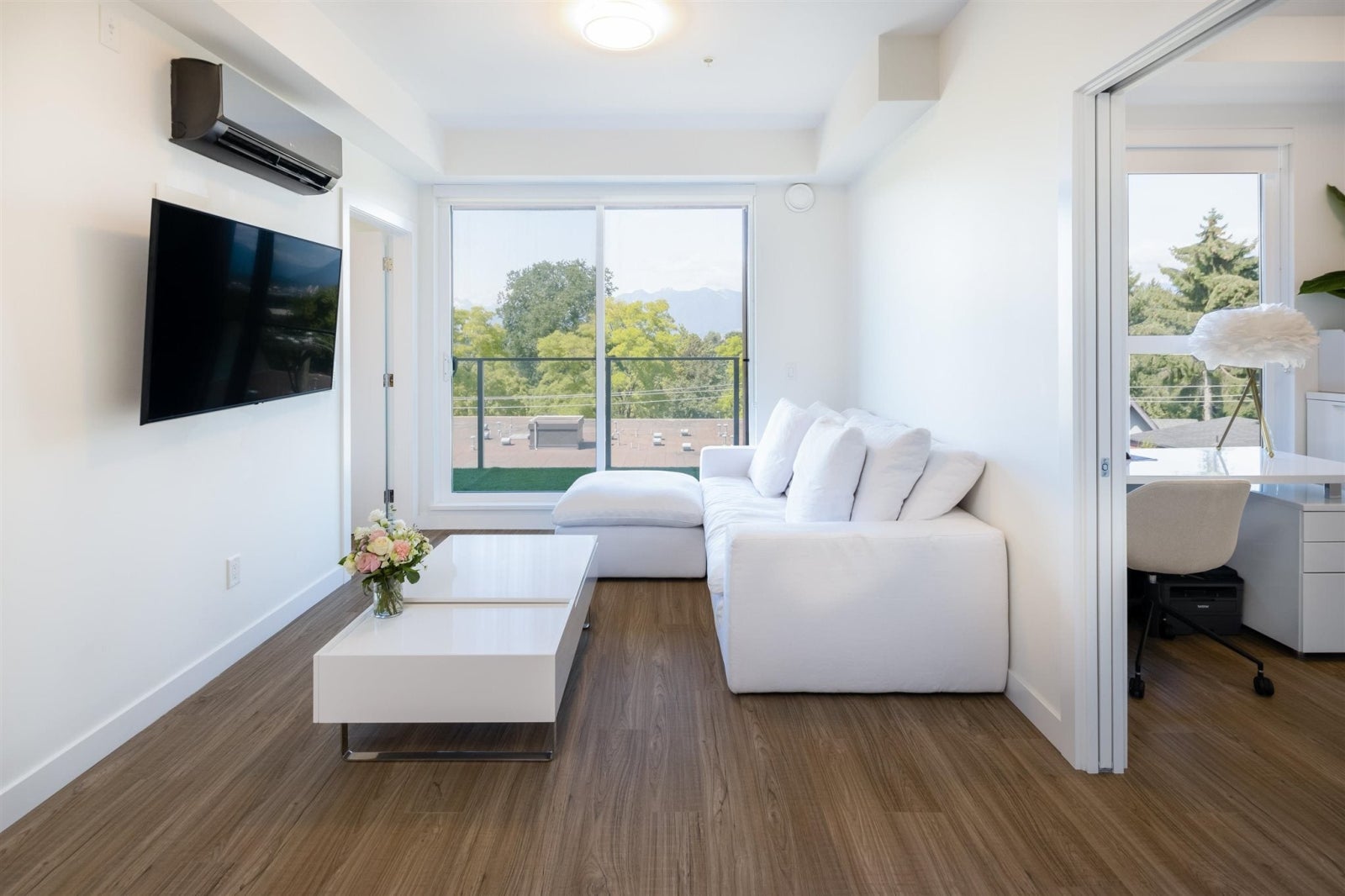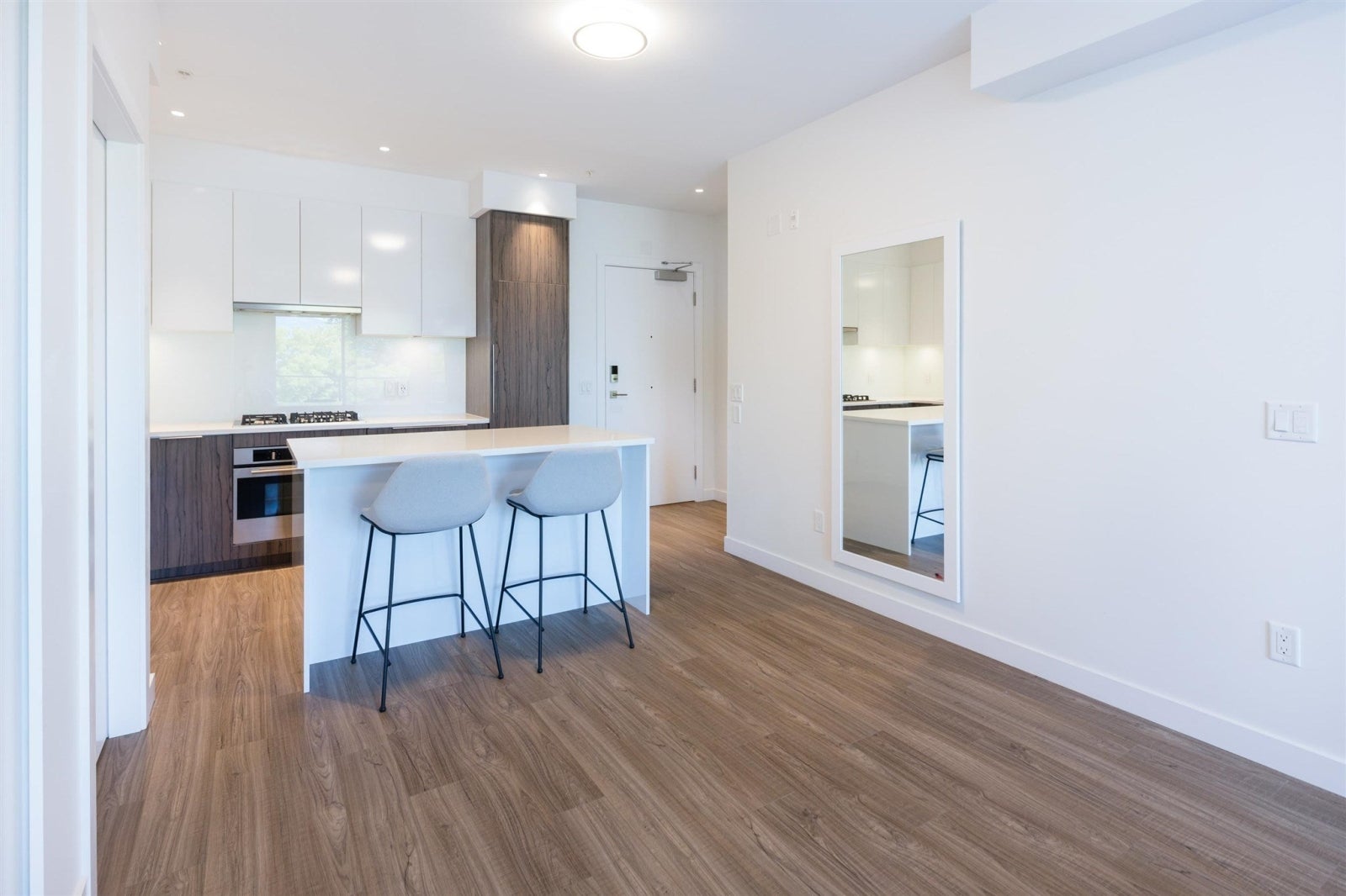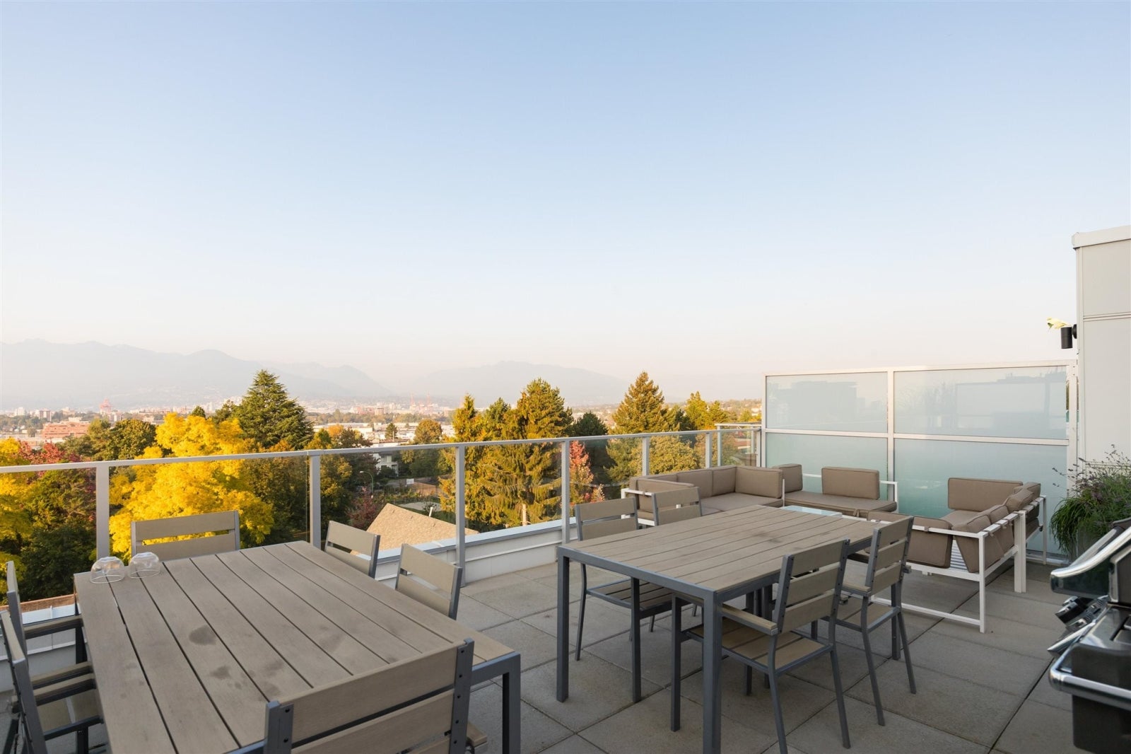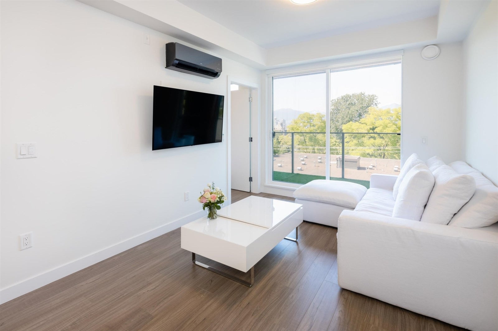 WELCOME TO SYNCHRO - Come home to a quiet north facing 2 bedroom 2 bathroom plus den home with a large outdoor patio! Beat the summer heat with air conditioning. Fully integrated SMART HOME with digital door lock and thermostat. This home features an efficient layout, high end laminate flooring, 9 foot ceilings, roller blinds, a custom kitchen island, California Closets and more. This impeccable kitchen features quartz countertops, a custom kitchen island, Blomberg & Fulgor SS appliances & hood fan. This home welcomes you w/ abundant light in each room as you are greeted w/unobstructed North Mountains and Expansive Vancouver Skyline Views. Seeing is believing: rental and pet friendly, 1 large parking stall and 1 secured storage.