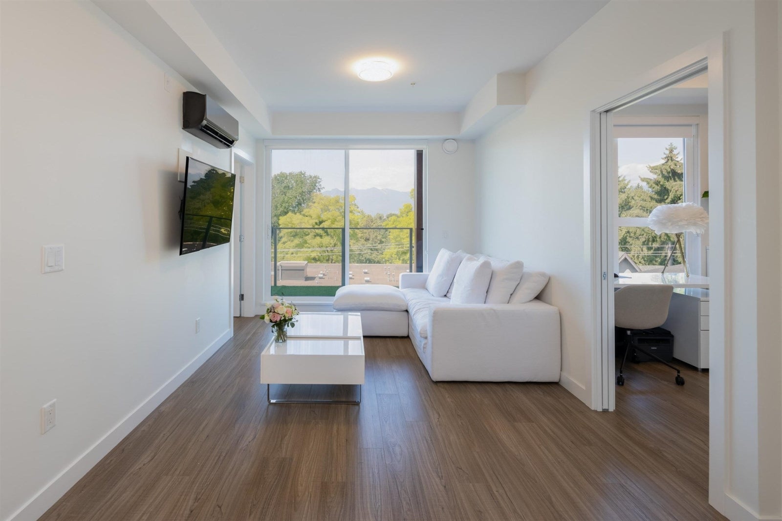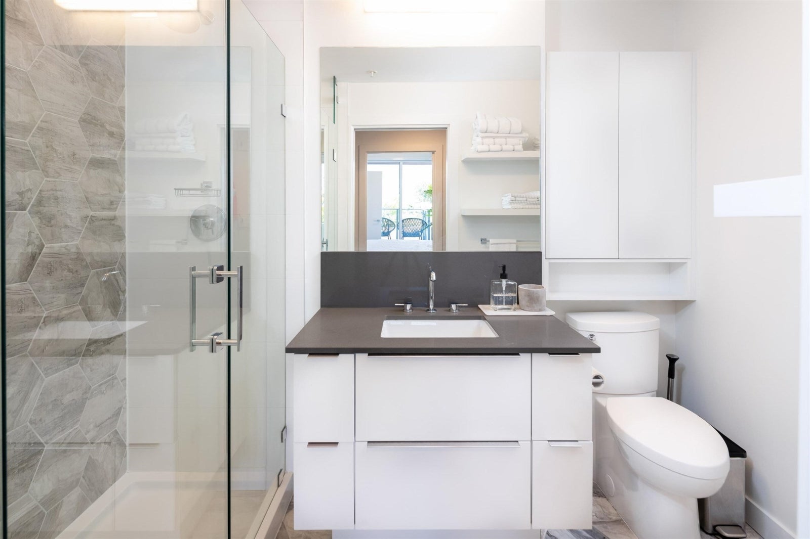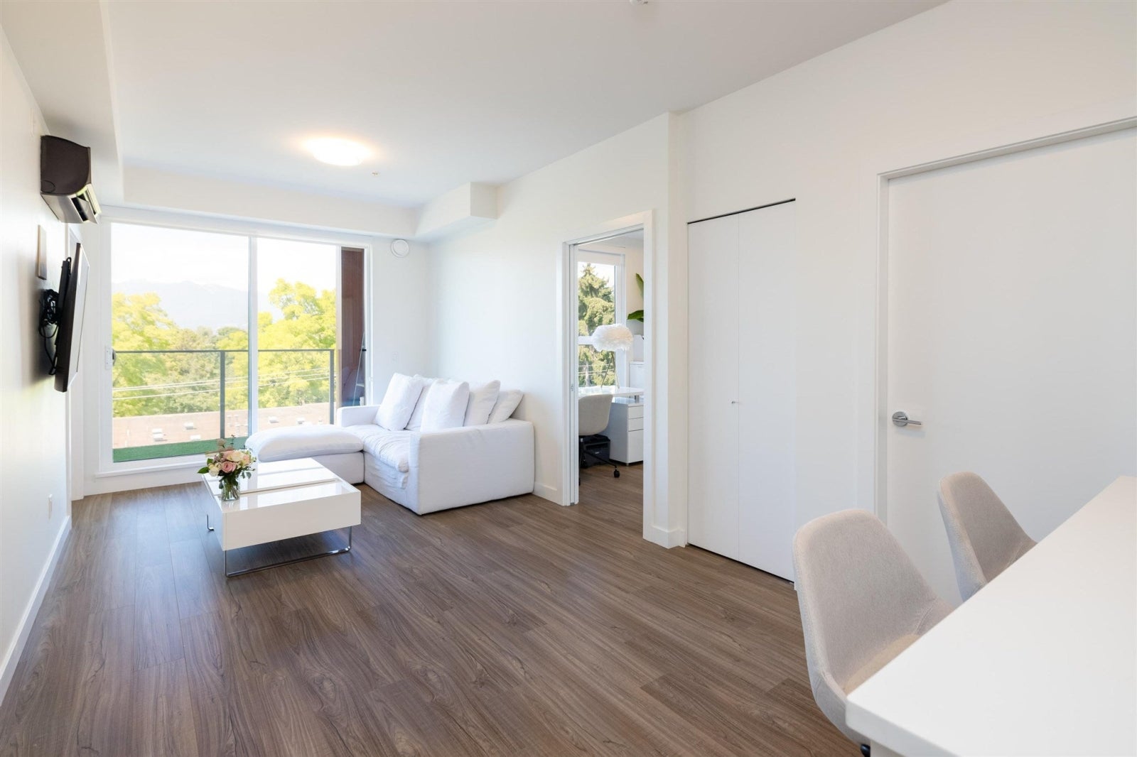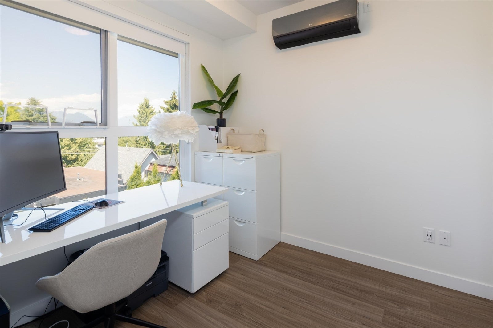WELCOME TO SYNCHRO - Come home to a quiet north facing 2 bedroom 2 bathroom plus den home with a large outdoor patio! Beat the summer heat with air conditioning. Fully integrated SMART HOME with digital door lock and thermostat. This home features an efficient layout, high end laminate flooring, 9 foot ceilings, roller blinds, a custom kitchen island, California Closets and more. This impeccable kitchen features quartz countertops, a custom kitchen island, Blomberg & Fulgor SS appliances & hood fan. This home welcomes you w/ abundant light in each room as you are greeted w/unobstructed North Mountains and Expansive Vancouver Skyline Views. Seeing is believing: rental and pet friendly, 1 large parking stall and 1 secured storage.