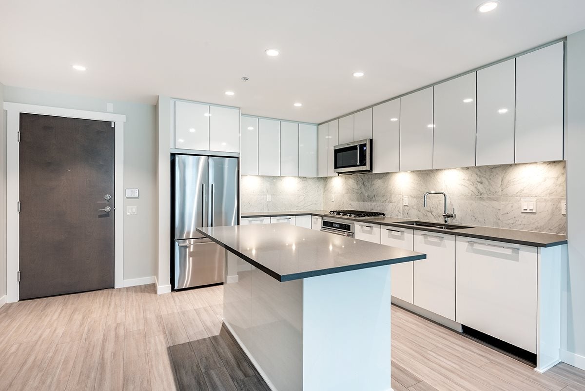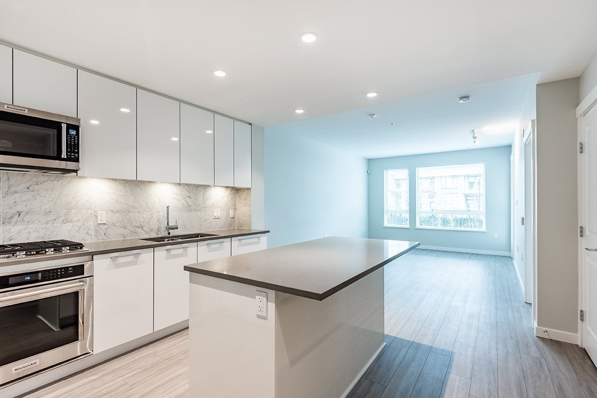 Move in Today! Beautiful open-concept one bedroom with ensuite bathroom, fantastic layout and huge private patio at Taluswood. Spacious and bright gourmet kitchen with stainless steel appliances with a large central island, 9’ ceilings, radiant in floor heating, included with 2/5/10 warranty. Steps away from Lynn Valley’s mall and shops, library and restaurants. Walking distance to trails, community centre with pool and hot tub and so many amenities. Book your showing today.
