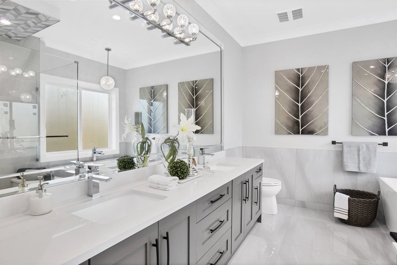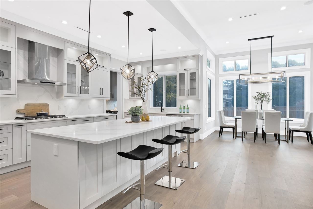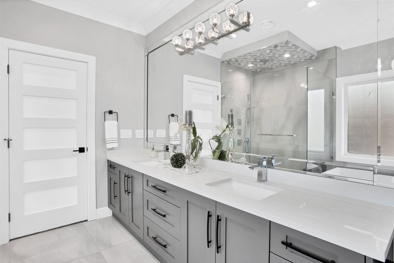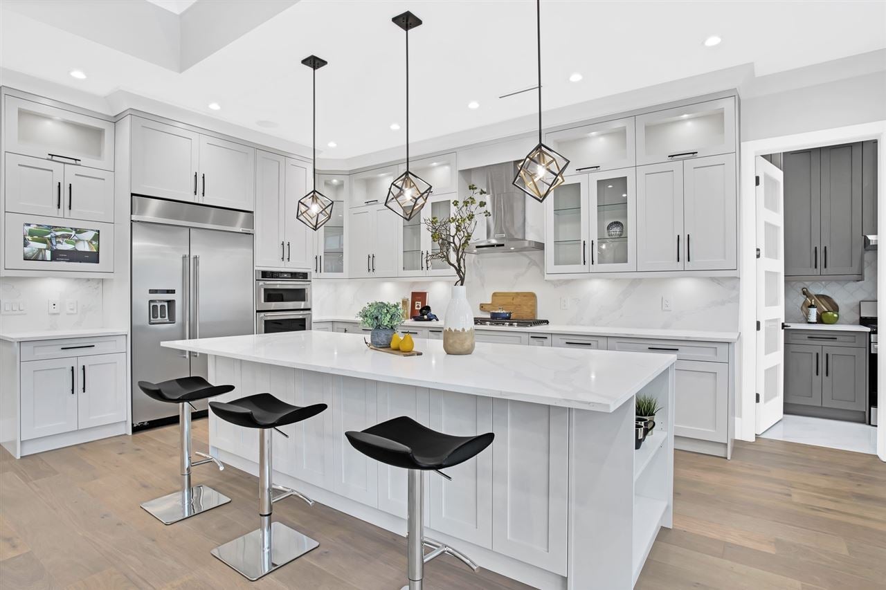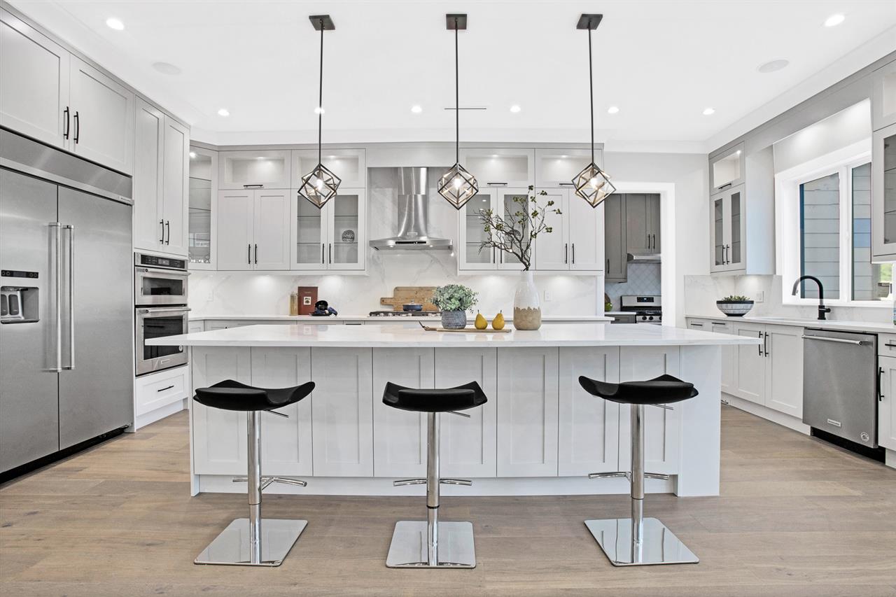 Another brand NEW family residence built by Master Builders: VRM Custom Homes. This IMPRESSIVE home is situated on a sunny 8700+ sqft property in desirable SOUTH SURREY! The 4000+ sqft of living space features an open floor plan, designer lighting & accessories, 'Pravada' Hardwood Floors, LED lighting throughout (energy efficient), Authentic 'James Hardie' Siding on the exterior (quality), lane access for further parking potential, & much more! This home offers flexibility with a 1 bedrm LEGAL suite, with an option for a 2nd bedroom. 4 spacious bedrooms are located on the upper, with walk-in closets & gorgeous individual ensuites. This home features a JAW-DROPPING chef's kitchen + prep kitchen - must be seen to be appreciated.