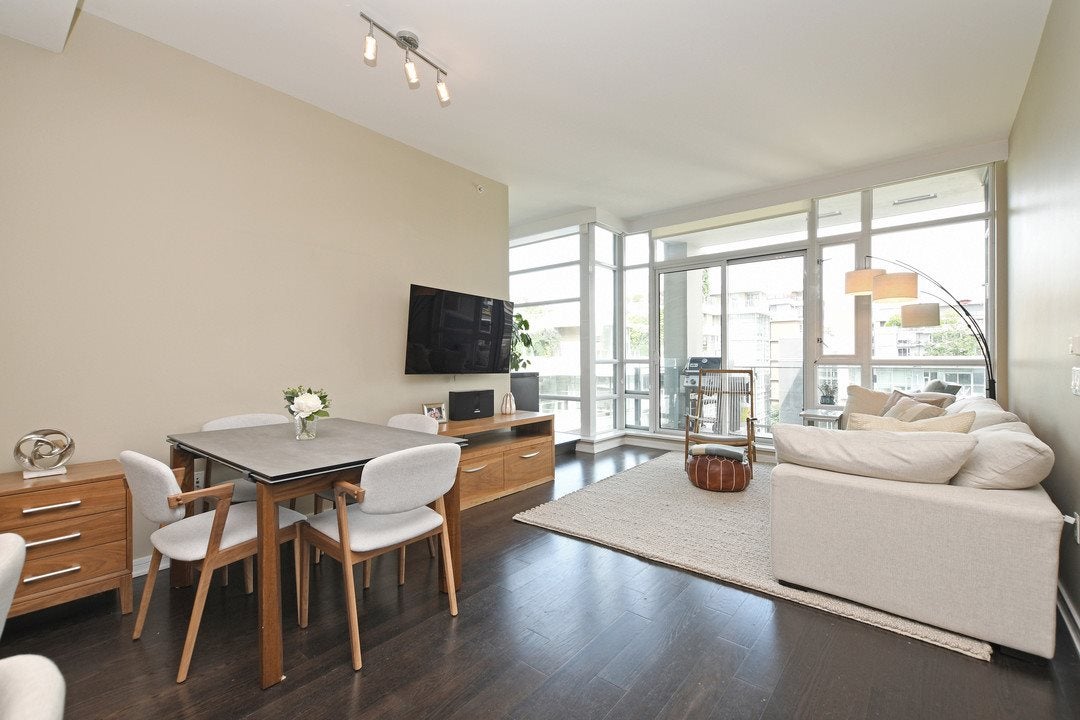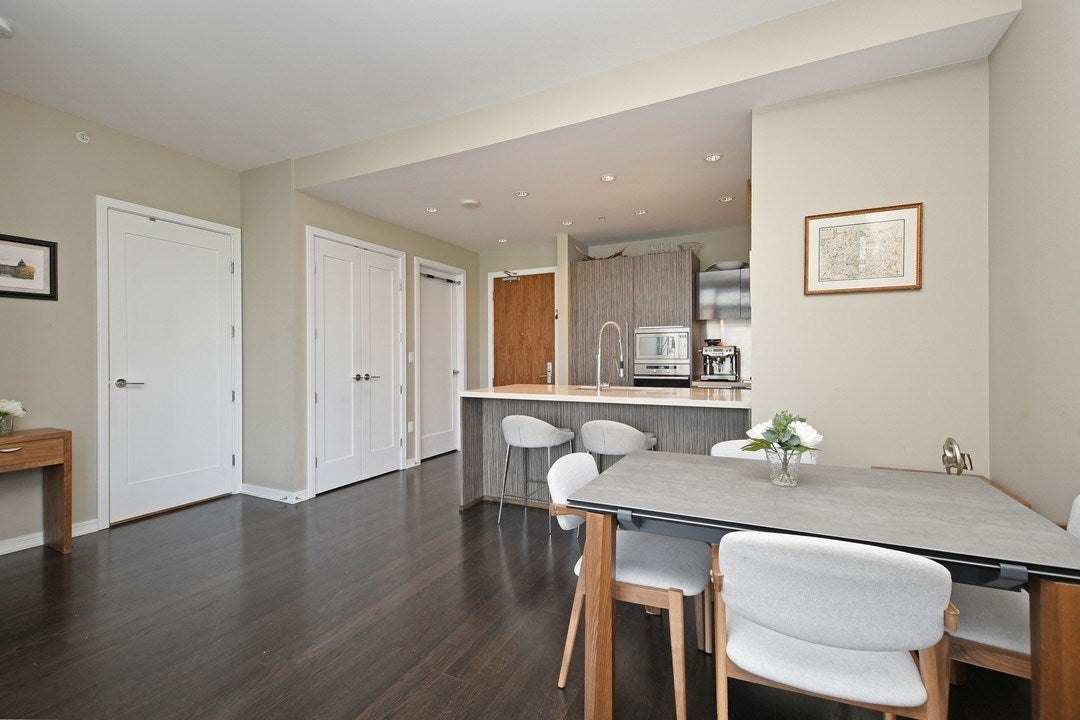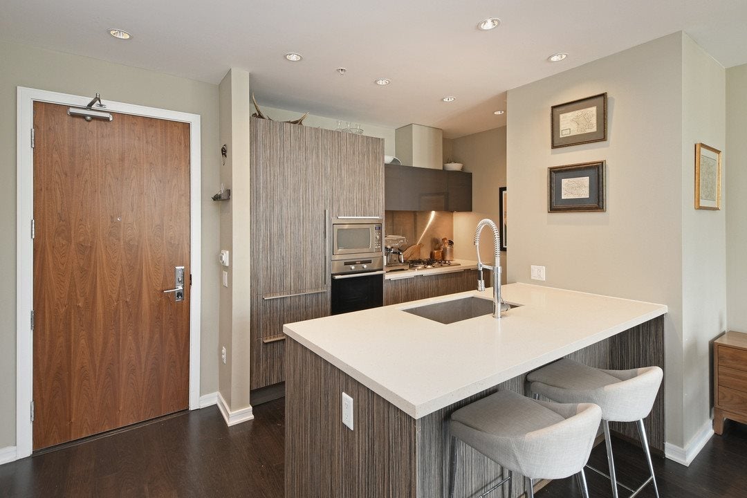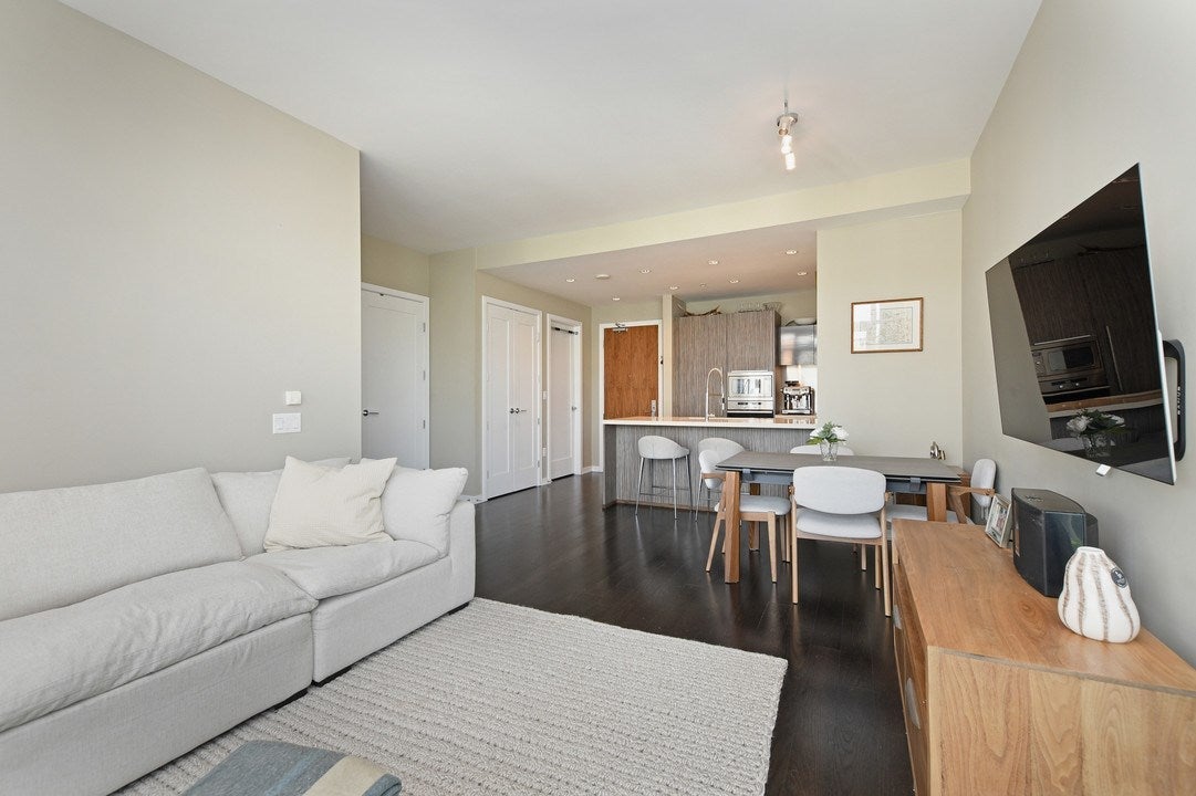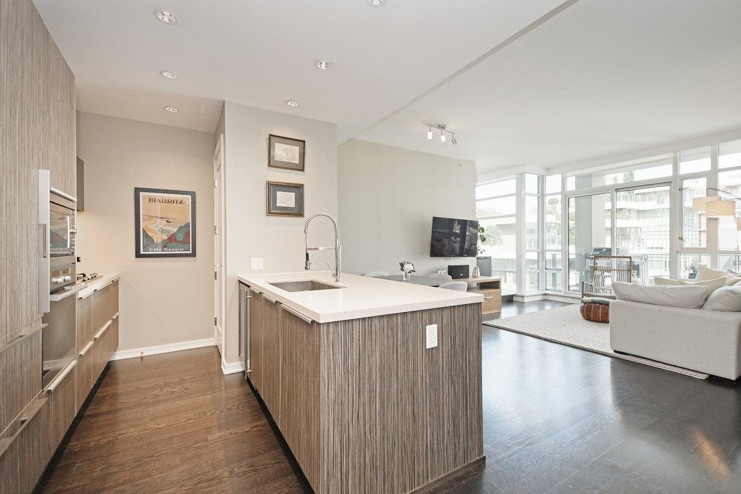 Stunning, extra large, open-concept , 1 Bed & flex home. Welcome to the highly sought-after The Bridge, Olympic Village. This beautifully maintained residence offers a spacious, bright, high ceiling, open floor plan. Quality finishing throughout including high-end chef’s kitchen with gourmet gas cooking, bright floor-to-ceiling windows, large balcony & cooling system. Quiet garden & peek-a-boo view of mountains, city & False Creek. Highly desired location just steps from the seawall, shopping, all of the incredible shops, local restaurants, parks, & recreation False Creek has to offer. Steps from skytrain, transportation, grocery markets, boutiques, & coffee shops. Enjoy the amenities including Gold-certified gym, pool, & concierge service. Call for private viewing today!