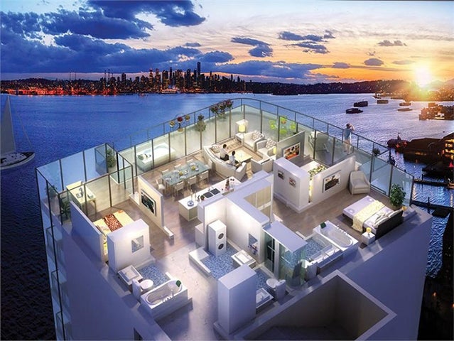 A wonderful layout highlights this spacious one plus den! Entertain on your large 325 sq ft terrace or on Trophy's owners roof deck complete with hot tub, fire pit, and BBQ kitchen. Quality finishing includes air-conditioning, soft close Scavolini cabinets, Bosch appliances including gas cooktop, and crown moulding. Owners enjoy the Pinnacle Pier Hotel's 5 lane 80 foot lap pool, gym, steam room, sauna, plus special VIP privileges. With a walk score of 92, Trophy offers location and lifestyle as you are just steps to shopping, restaurants, Lonsdale Quay Fresh Market, and the Seabus - all in a prime waterfront location! It's the place to be!